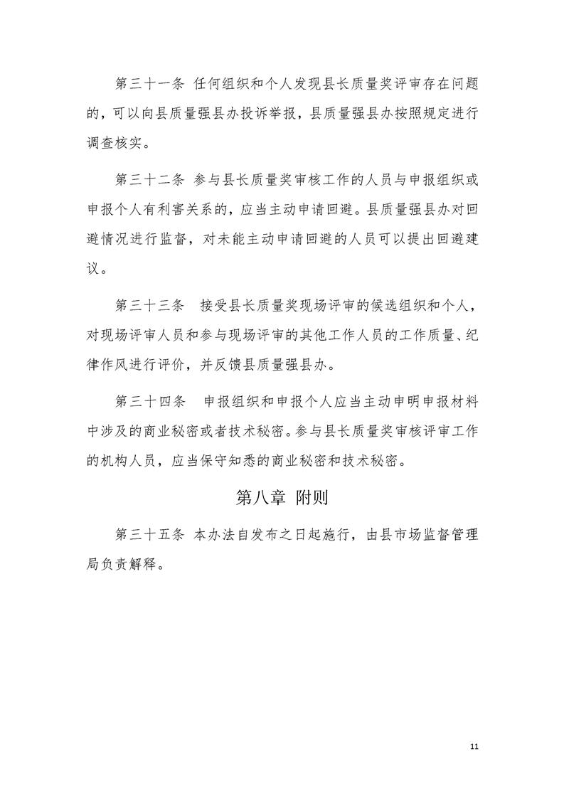 ray雷竞技官网入口质量强县领导小组办公室 关于征求《ray雷竞技官网入口县长质量奖评定管理办法(征求意见稿)》意见建议的公示