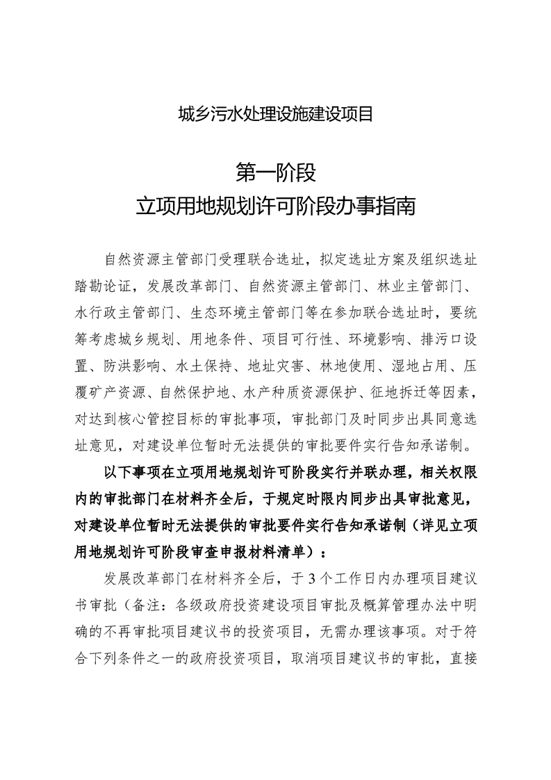 城乡污水处理设施建设项目 立项用地规划许可阶段办事指南