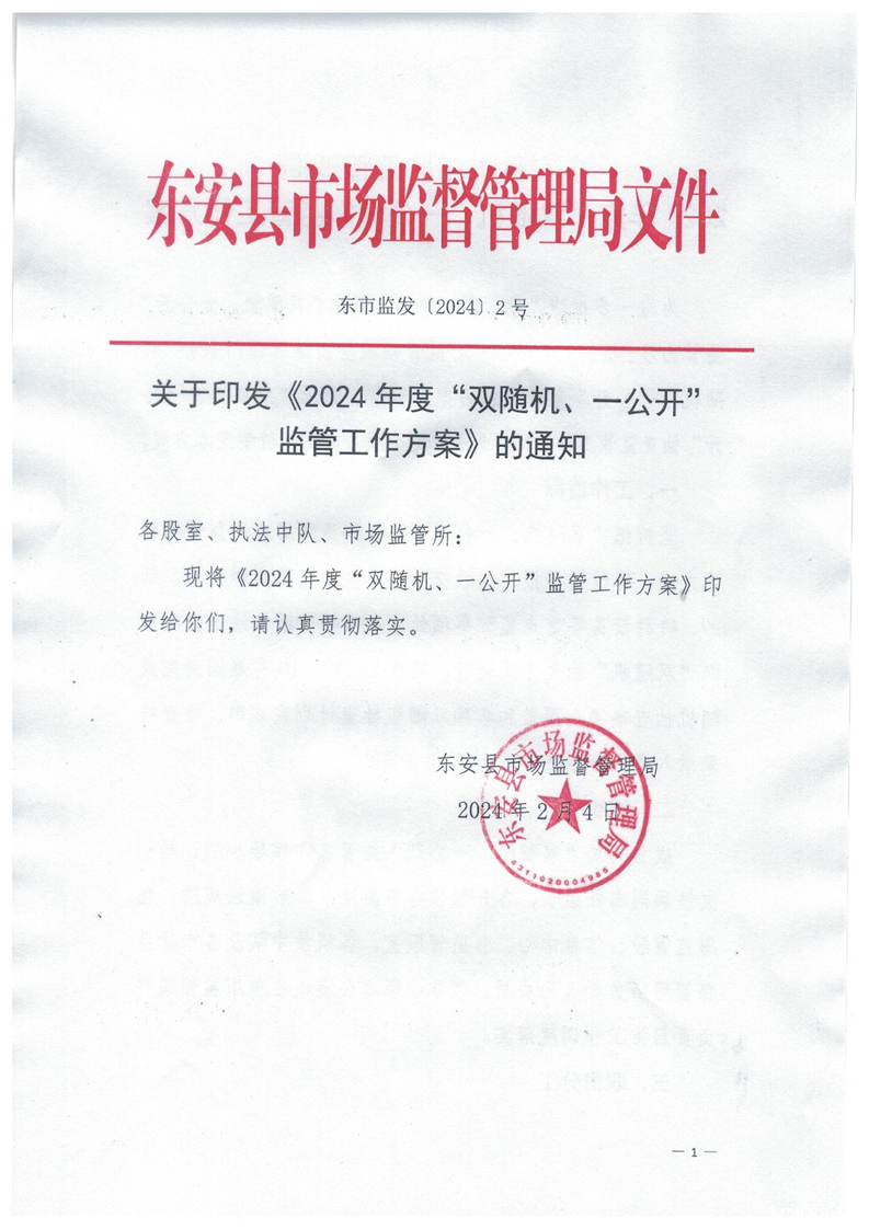 东市监发〔2024〕2号ray雷竞技官网入口市监局2024年度“双随机、一公开”监管工作方案