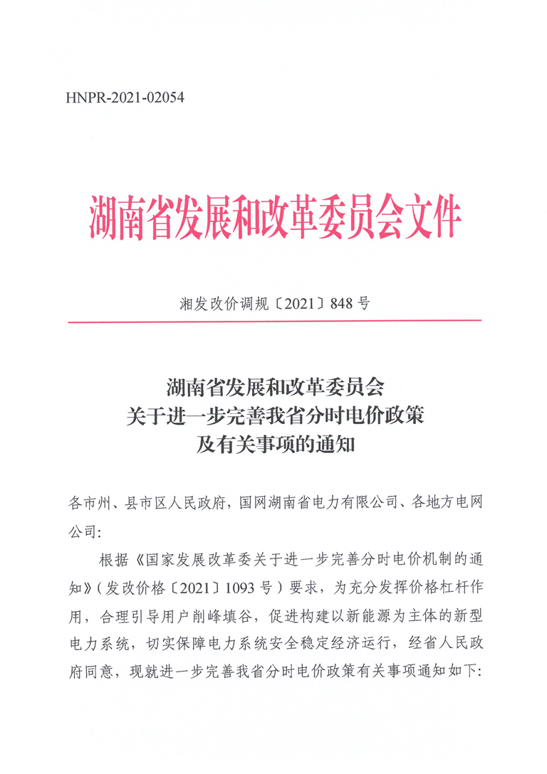 7.湘发改价调规〔2021〕848号_关于进一步完善我省分时电价政策及有关事项的通知