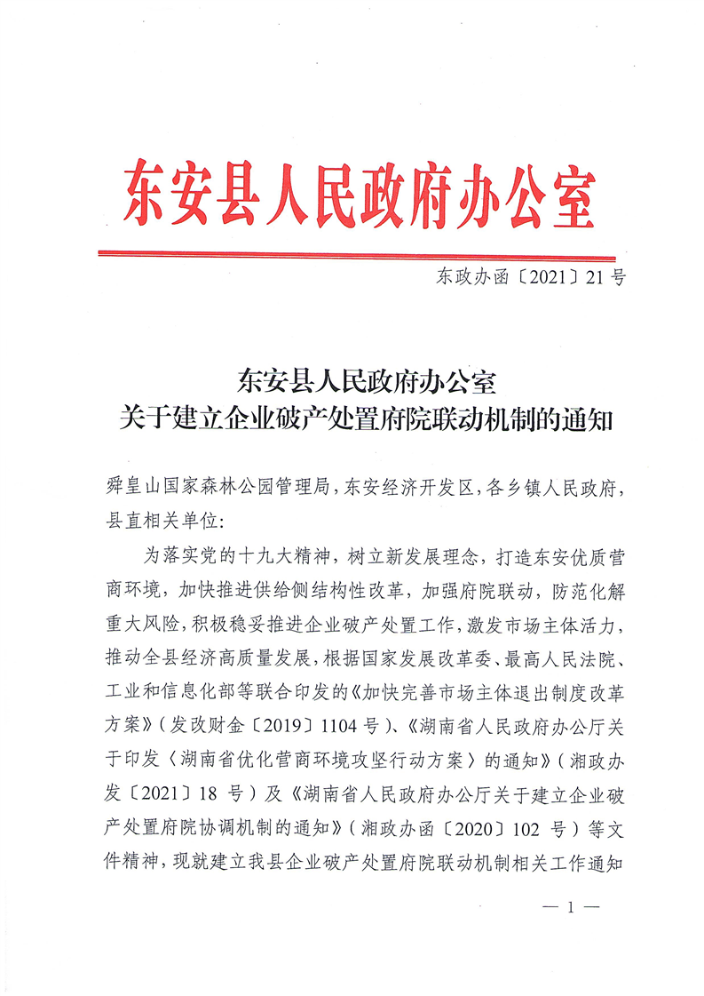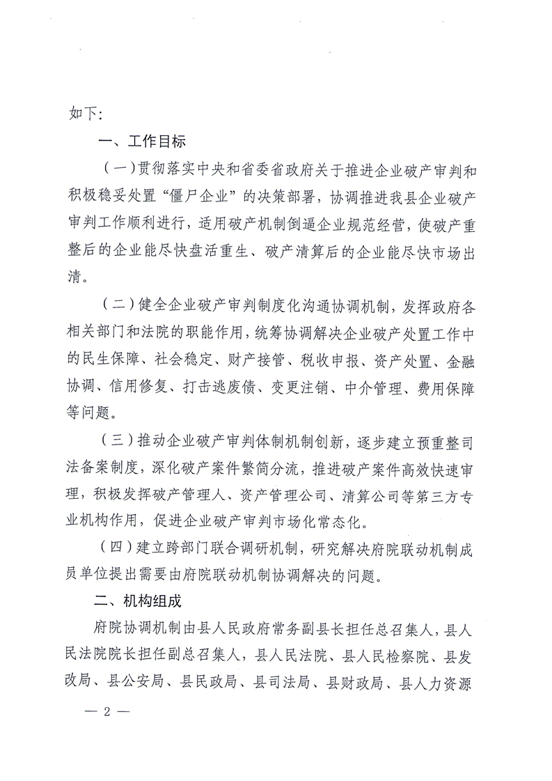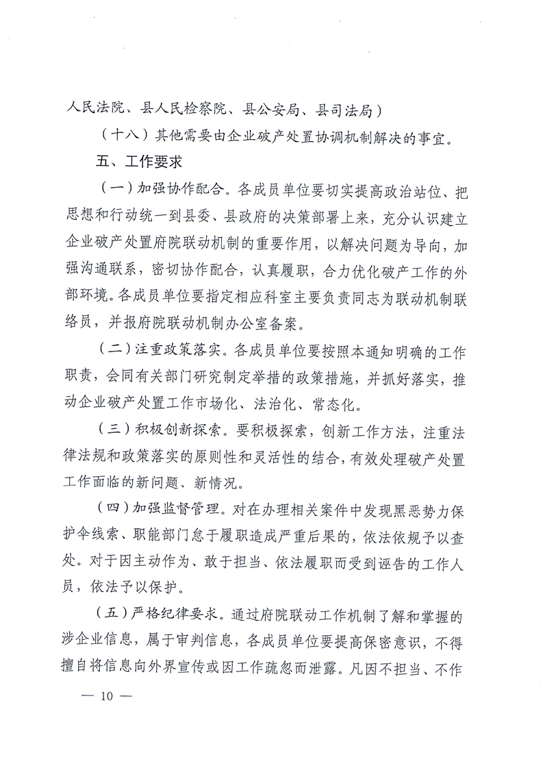 rayvet雷竞技办公室关于建立企业破产处置府院联动机制的通知