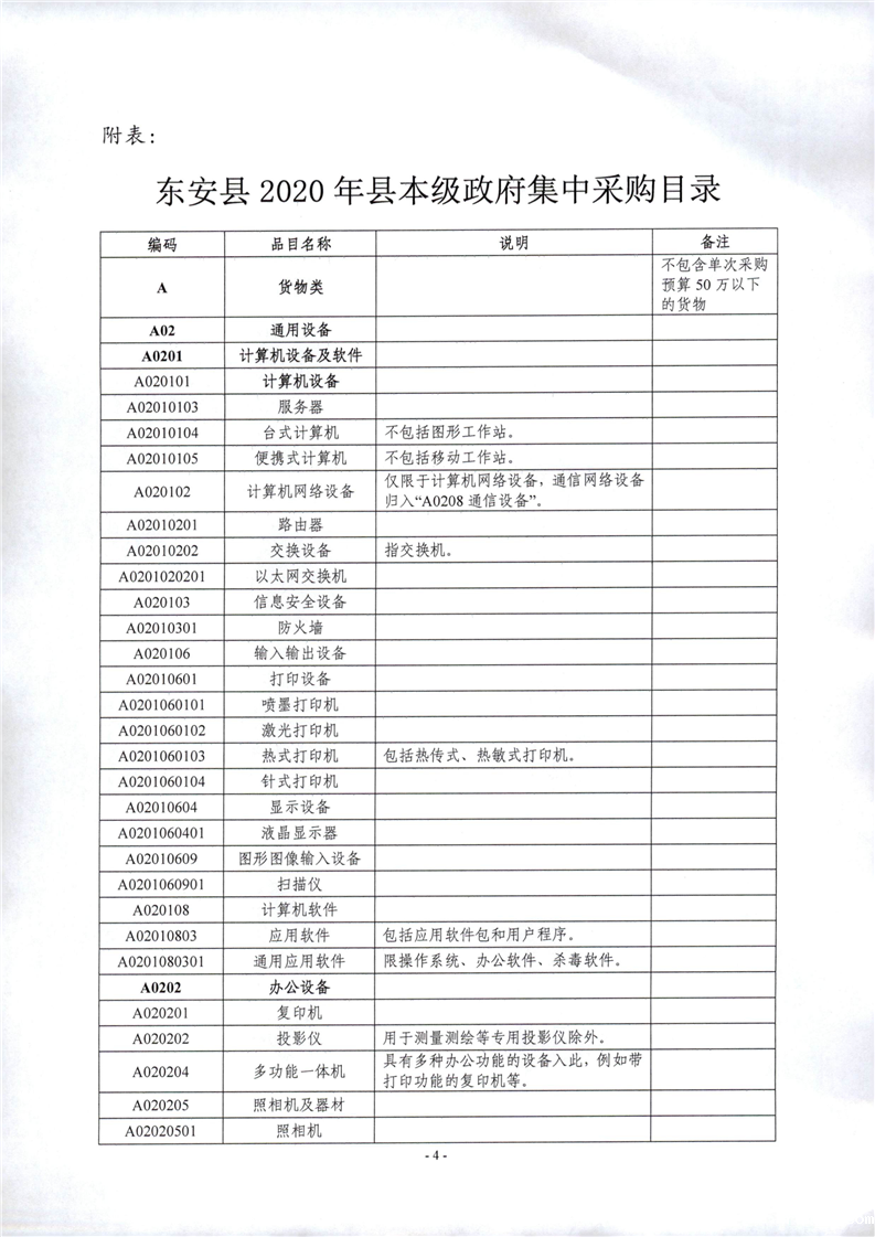 ray雷竞技官网入口2020年县本级政府集中采购目录及政府采购限额标准