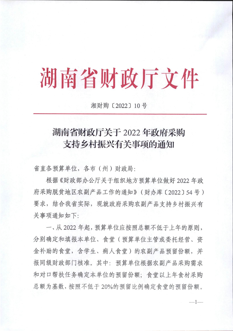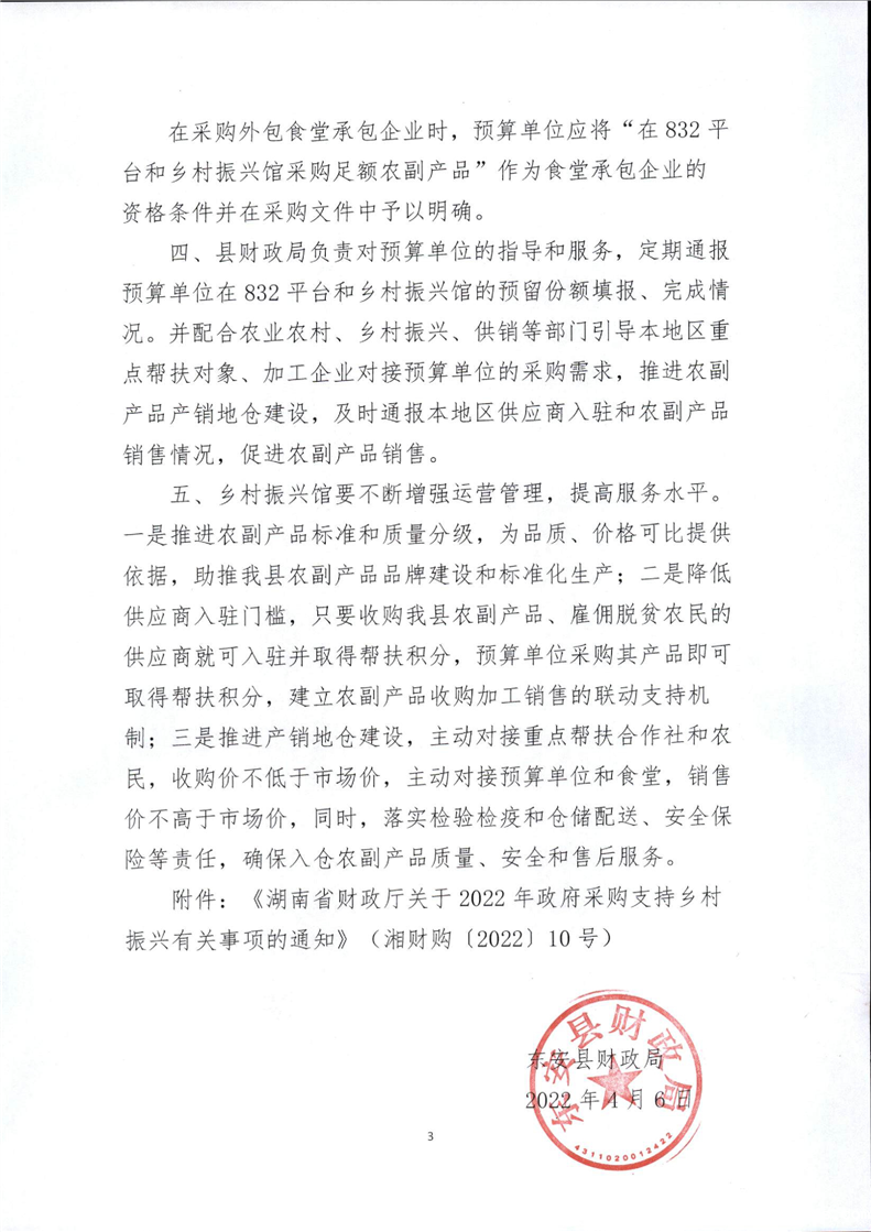 ray雷竞技官网入口财政局关于2022年政府采购支持乡村振兴有关事项的通知