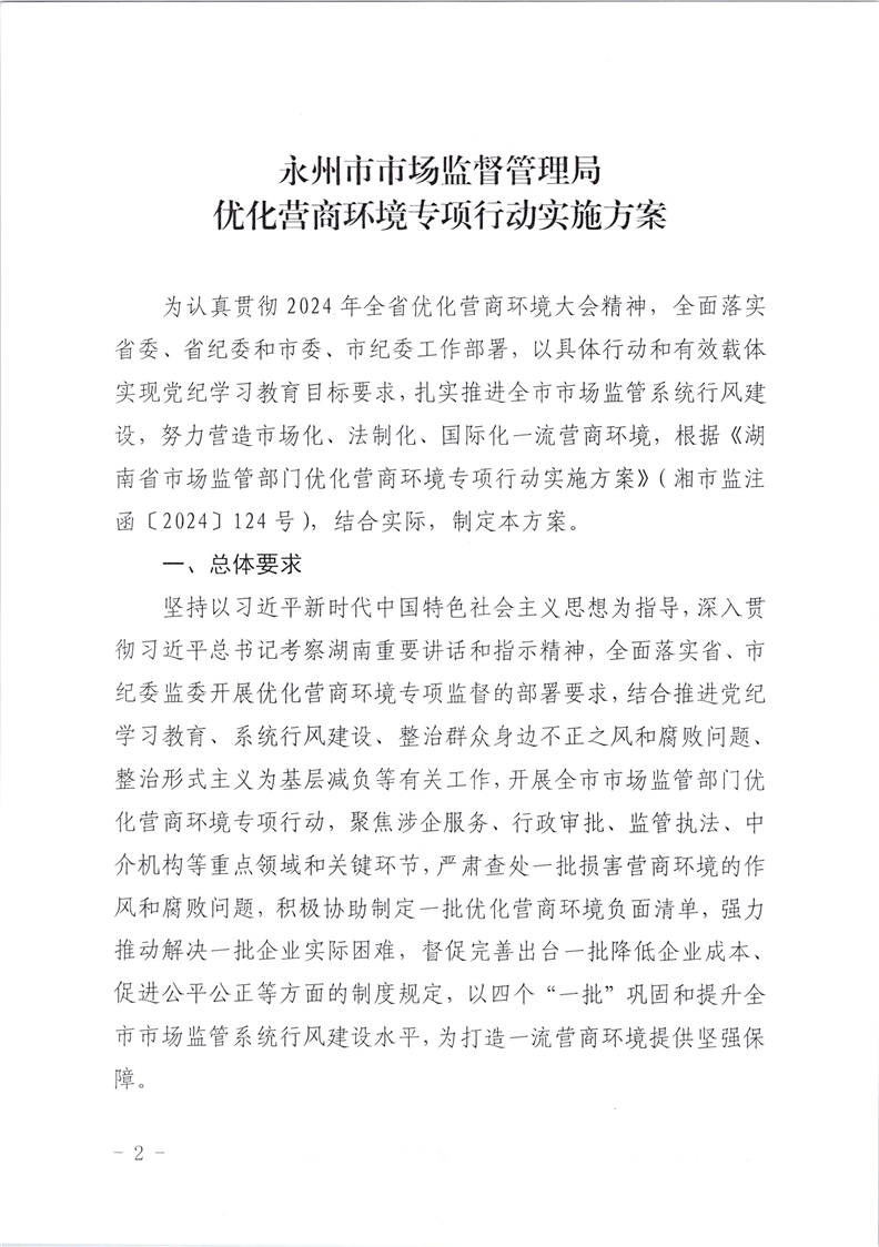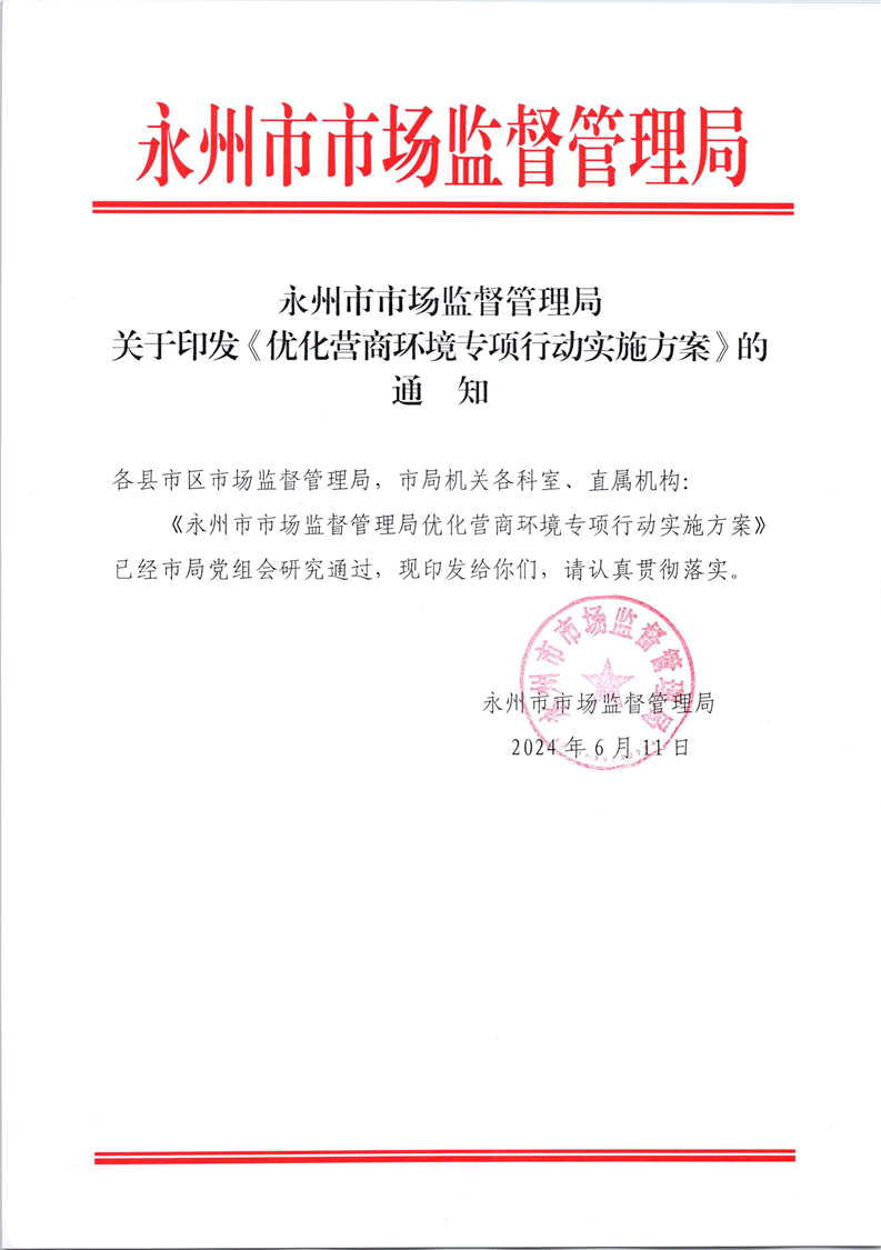 永州市市场监管局优化营商环境专项行动实施方案