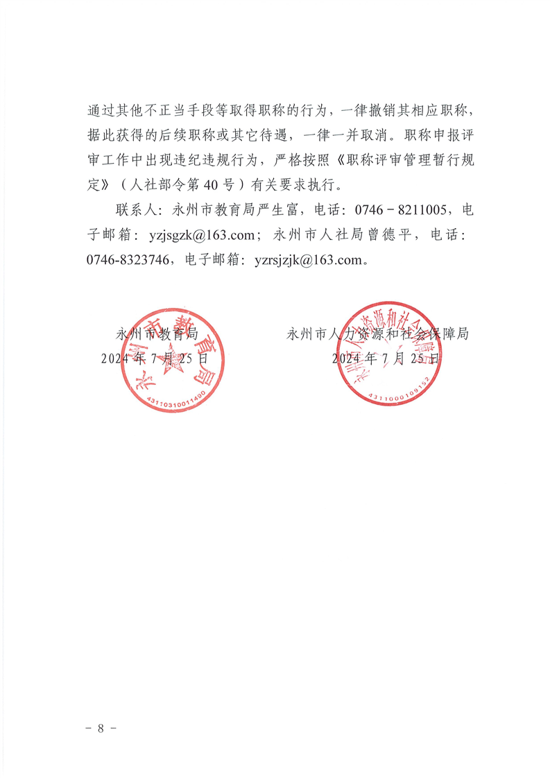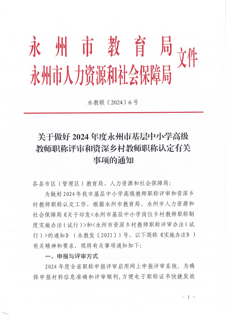 关于做好2024年度永州市基层中小学高级教师职称评审和资深乡村教师职称认定有关事项的通知