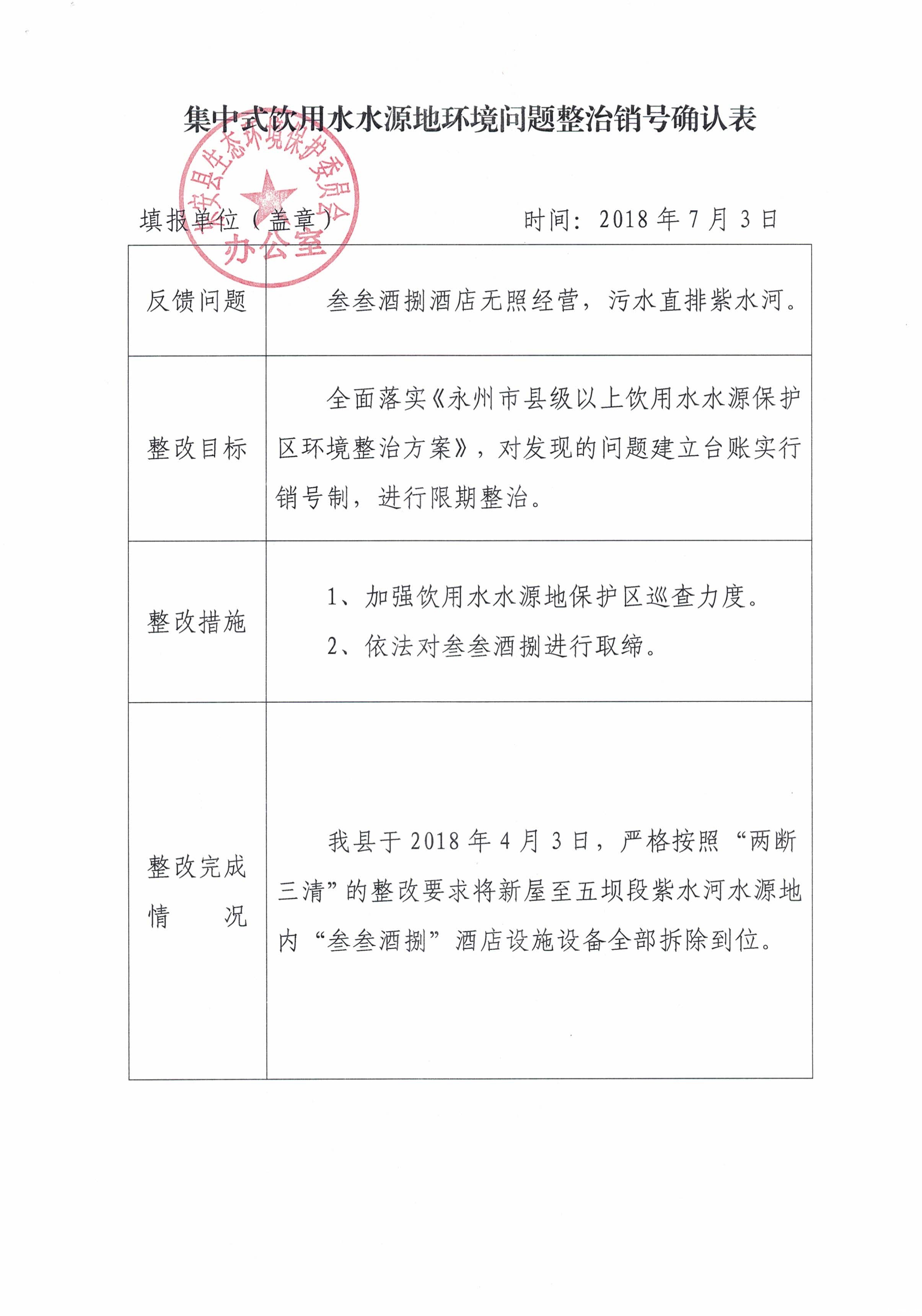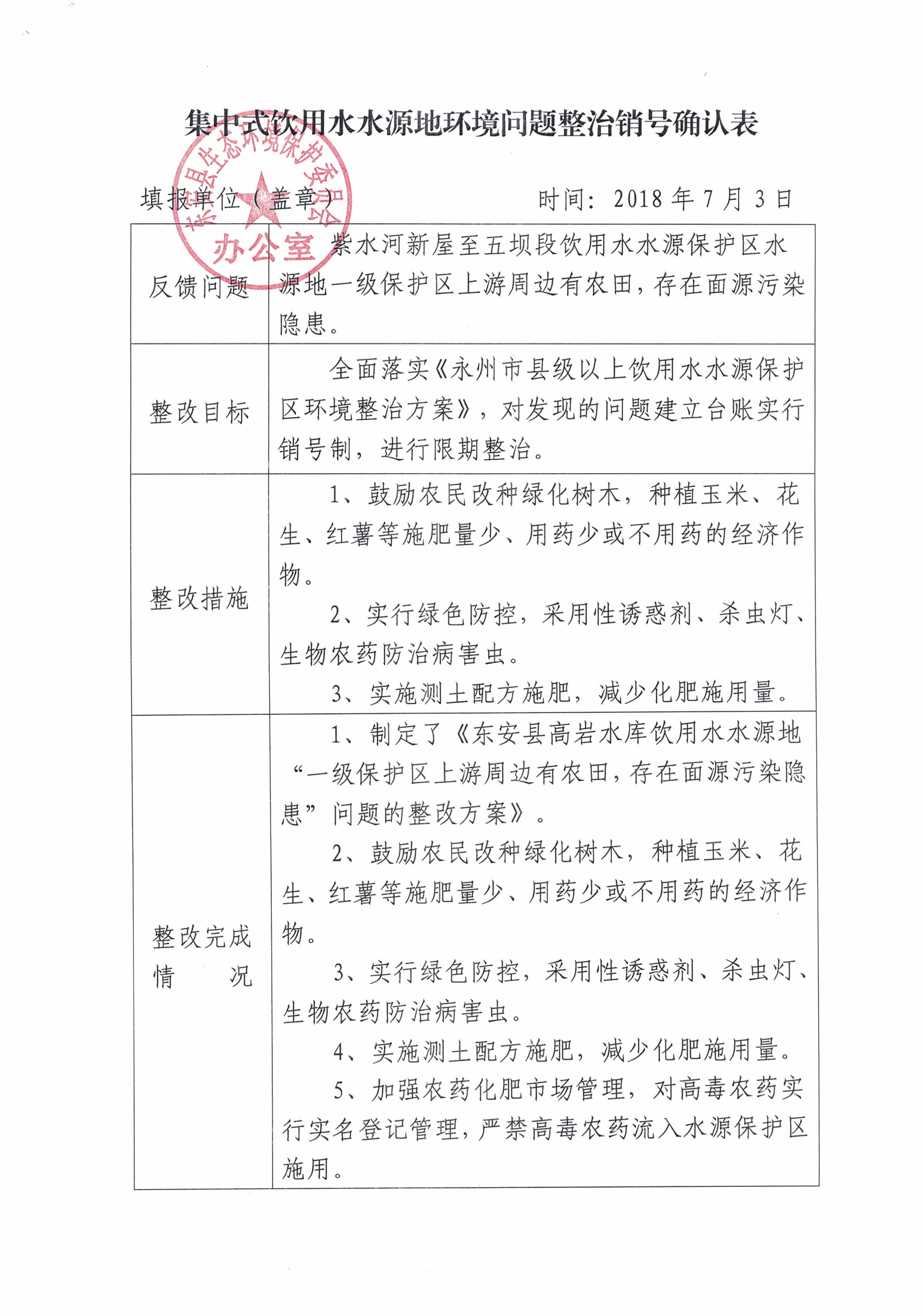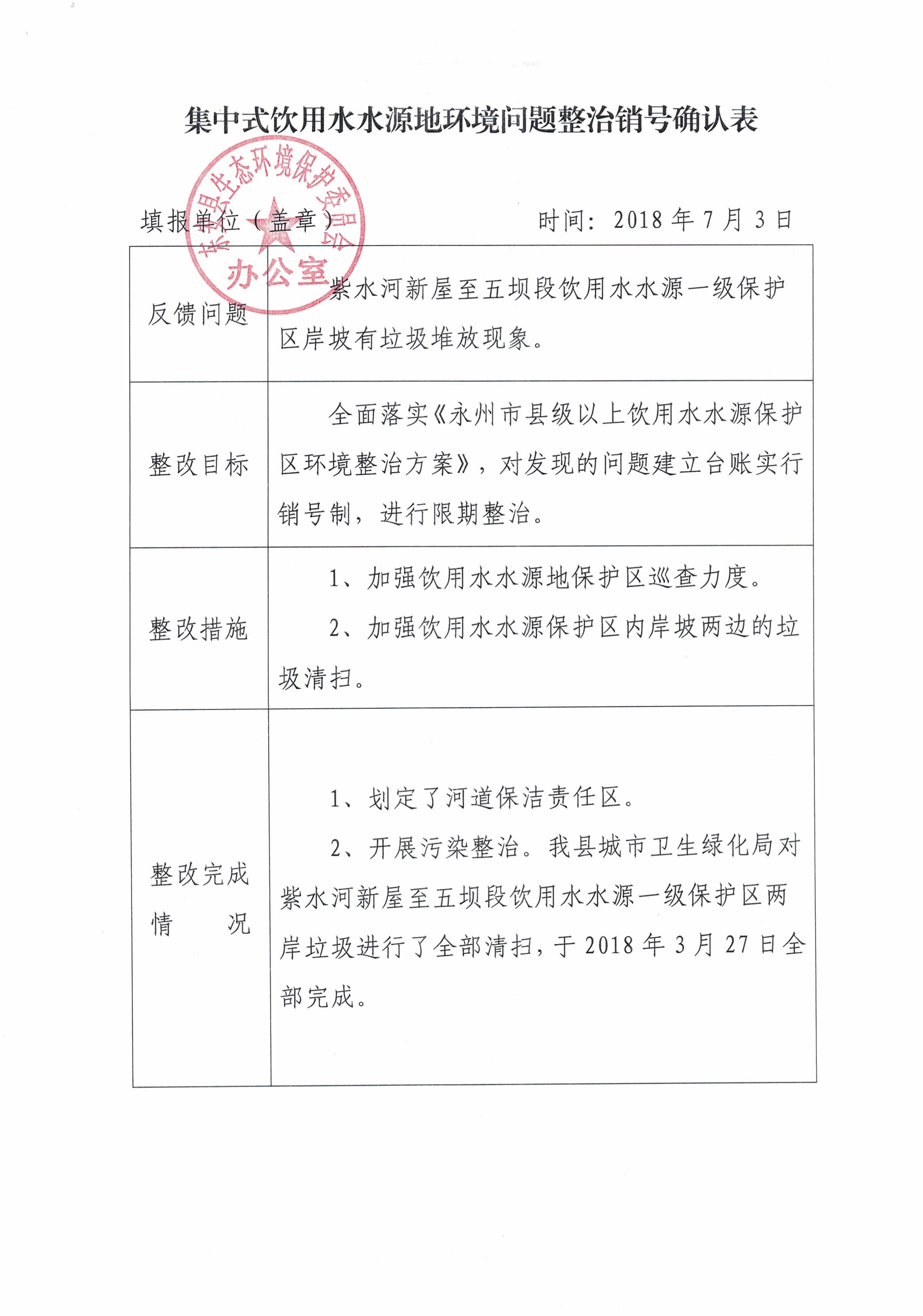 ray雷竞技官网入口集中式饮用水水源地环境问题整治销号确认表