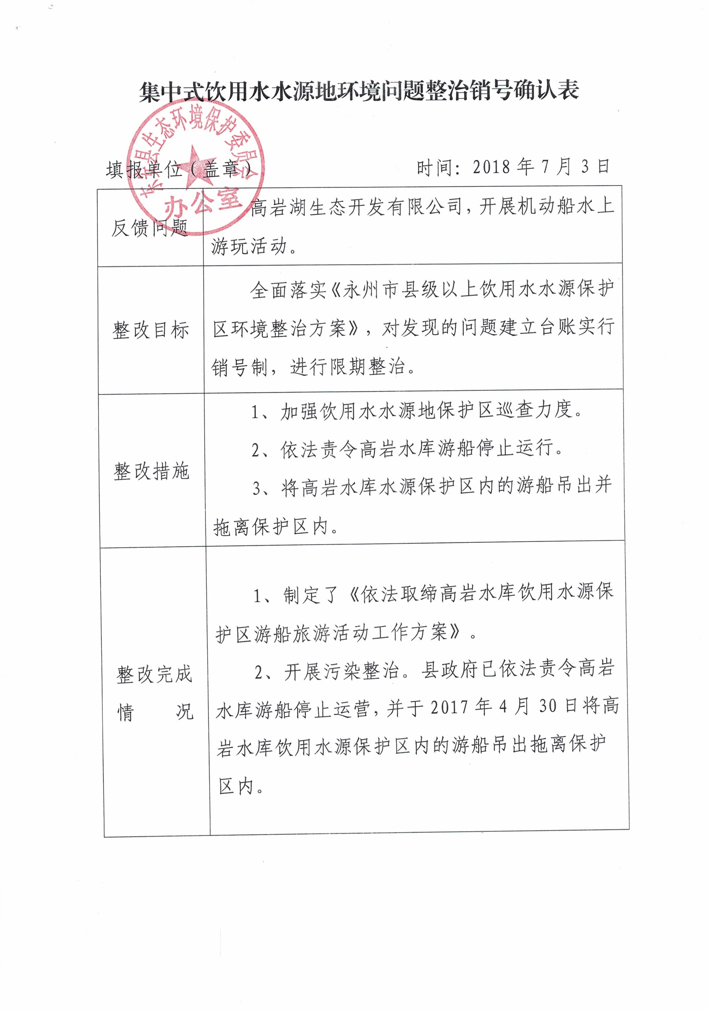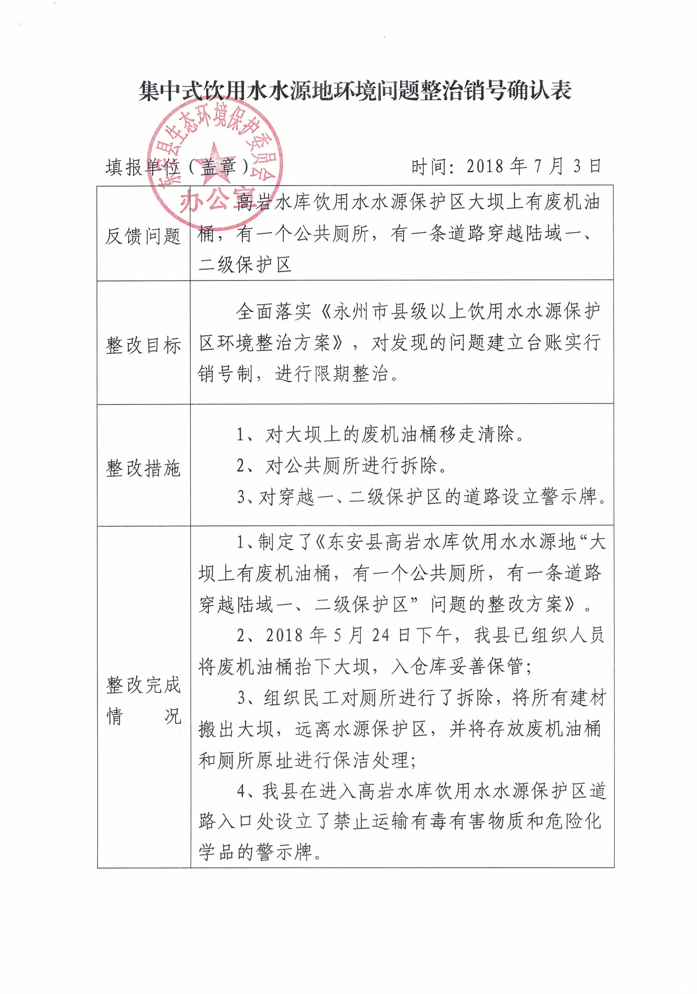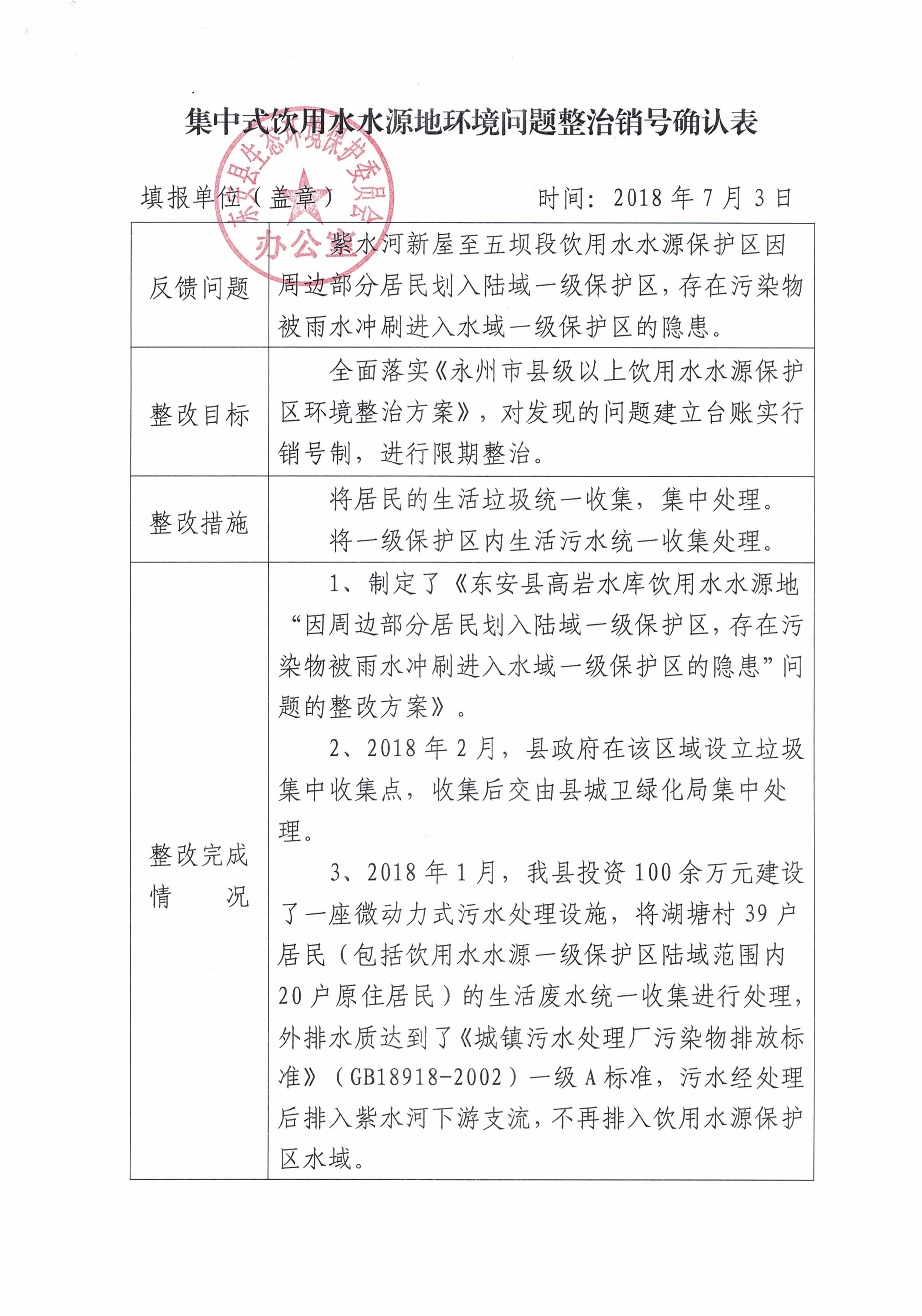 ray雷竞技官网入口集中式饮用水水源地环境问题整治销号确认表