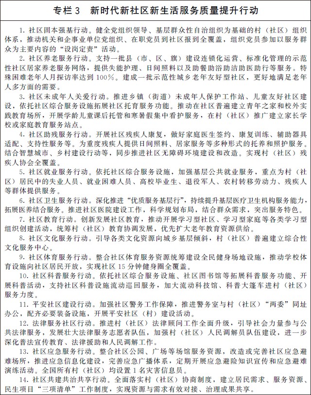 到2025年末,党建引领社区服务体系建设更加完善,服务主体和服务业态更加丰富,线上线下服务机制更加融合,精准化、精细化、智能化水平持续提升,社区吸纳就业能力不断增强,基本公共服务均等化水平明显提升,人民群众操心事、烦心事、揪心事更好解决,获得感、幸福感、安全感不断增强。