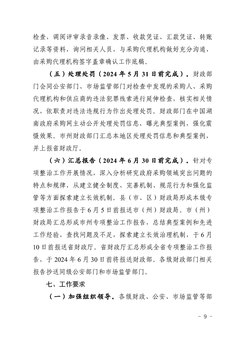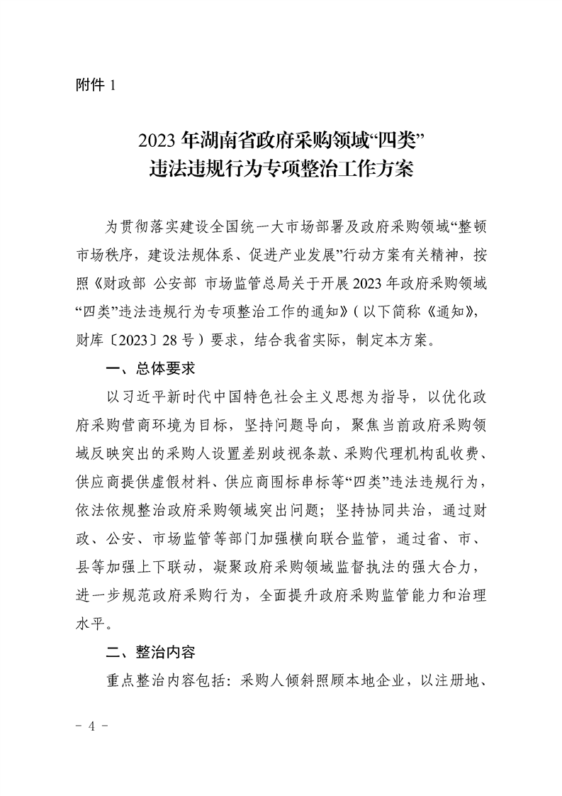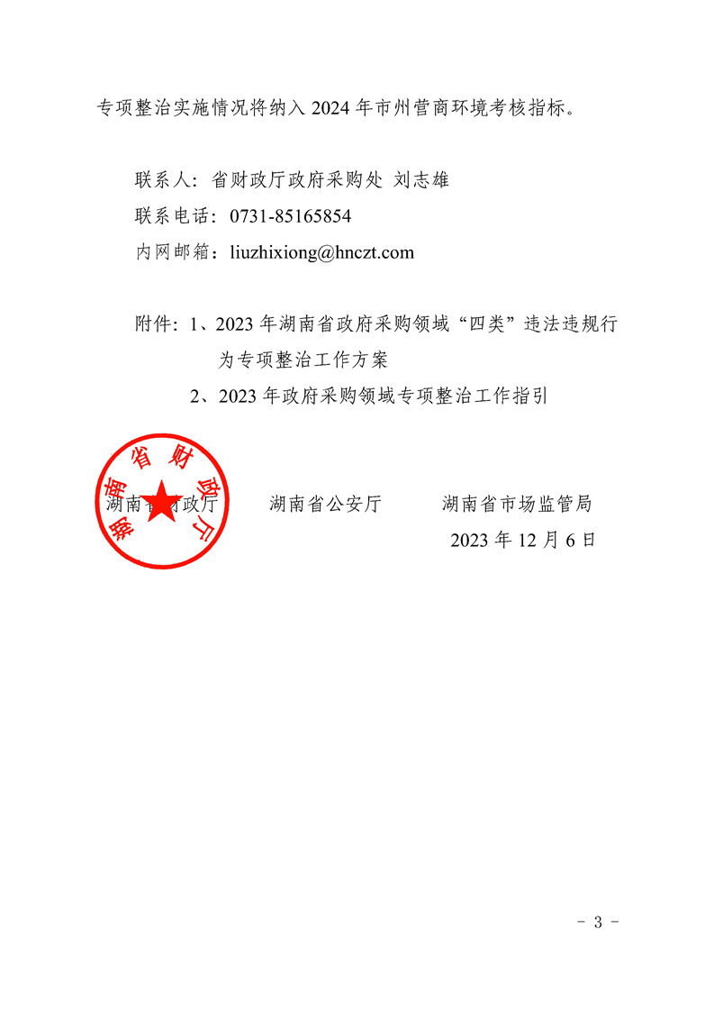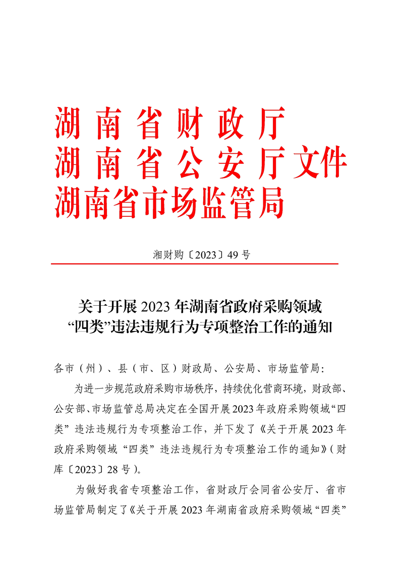 湖南省财政厅 湖南省公安厅 湖南省市场监管局关于开展2023年全省政府采购领域“四类”违法违规行为专项整治工作的通知