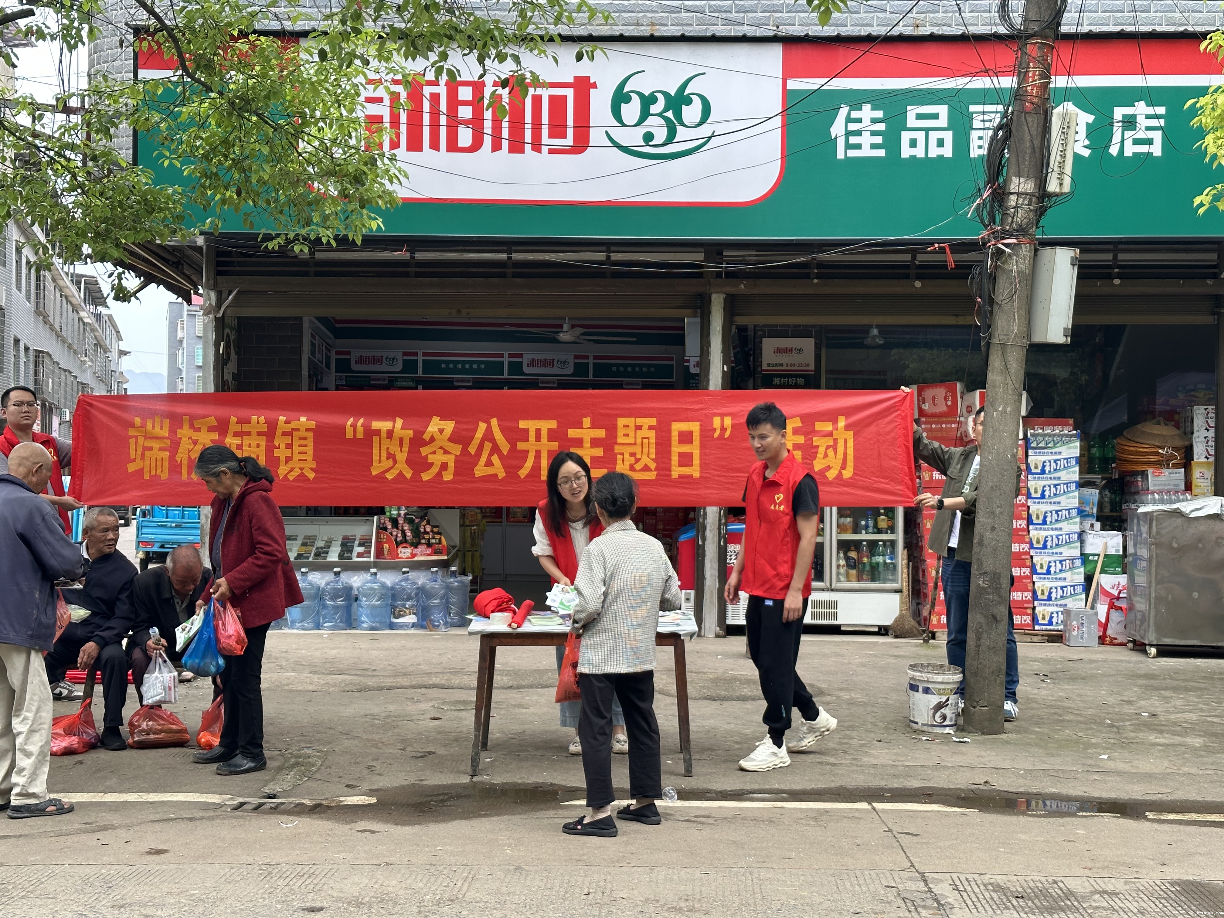 活动现场,端桥铺镇农业办、综治办、党政办、妇联、民政、自然资源、环保、等多部门联合组成宣传队,工作人员和新时代文明实践志愿者通过摆设固定宣传点和走街串巷流动宣传相结合的方式,向群众普及政务讲解主题日相关知识、民政救助、耕地保护、安全生产知识、禁毒识毒知识、惠农政策等内容,还就群众关心的热点、难点问题给予耐心解答和帮助。此次活动共发放宣传单和宣传手册120余份,解答群众疑惑20余次,让群众切实感受到了政务公开所带来的便利和实惠,提高了政务公开的社会效益。