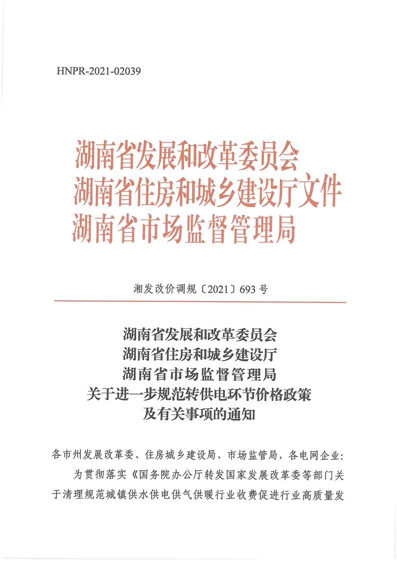 现将湖南省发展和改革委员会、湖南省住房和城乡建设厅、湖南省市场监督管理局《关于进一步规转供电环节价格政策及有关事项的通知》(湘发改价调规[2021]693号)转发给你们,请严格遵照执行。