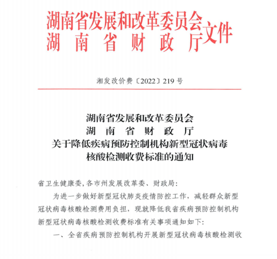 关于降低疾病预防控制机构新型冠状病毒核酸检测收费标准的通知