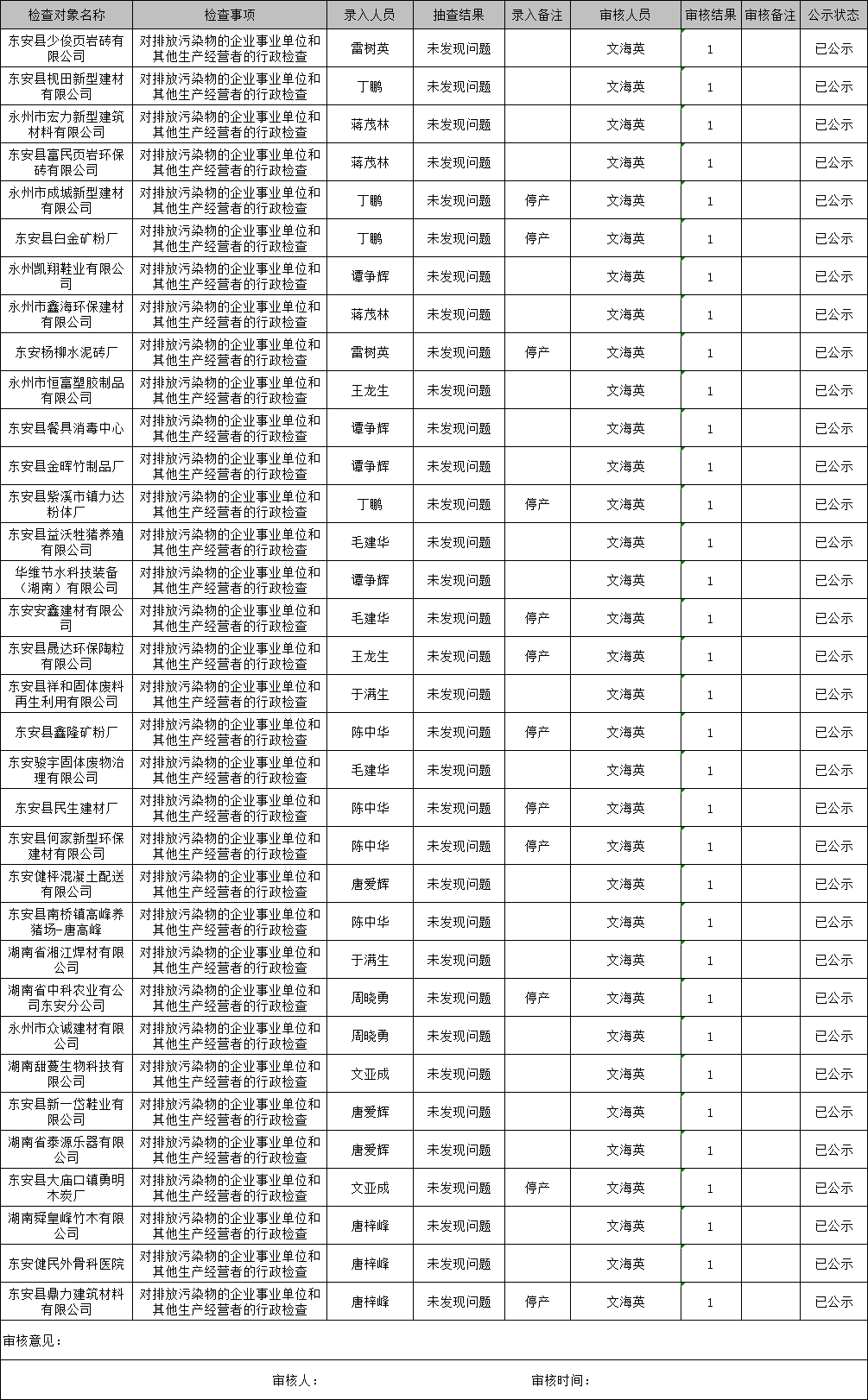 2022年第三季度对排放污染物的企业事业单位和其他生产经营者的监管——抽查结果公示