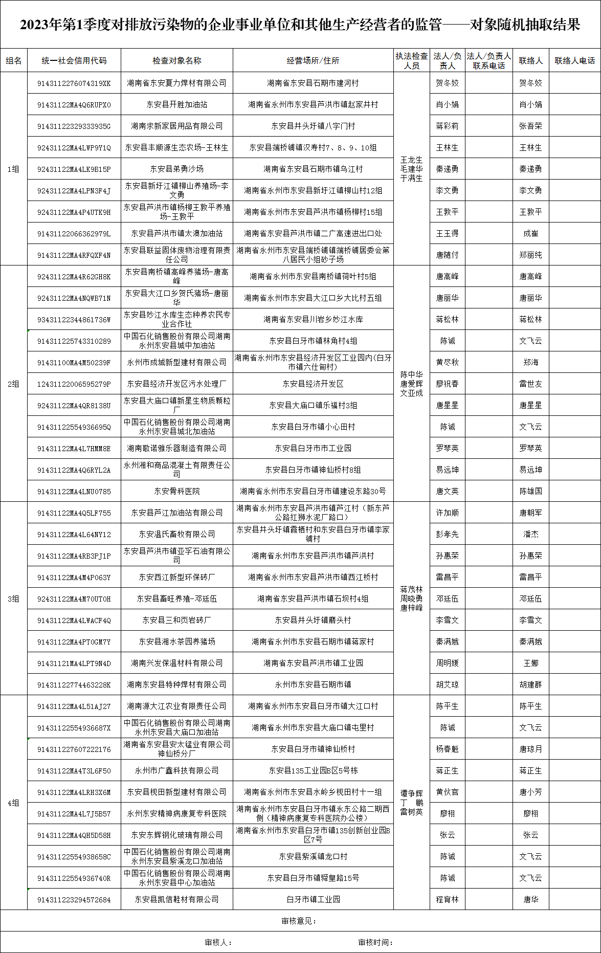2023年第1季度对排放污染物的企业事业单位和其他生产经营者的监管——对象随机抽取结果