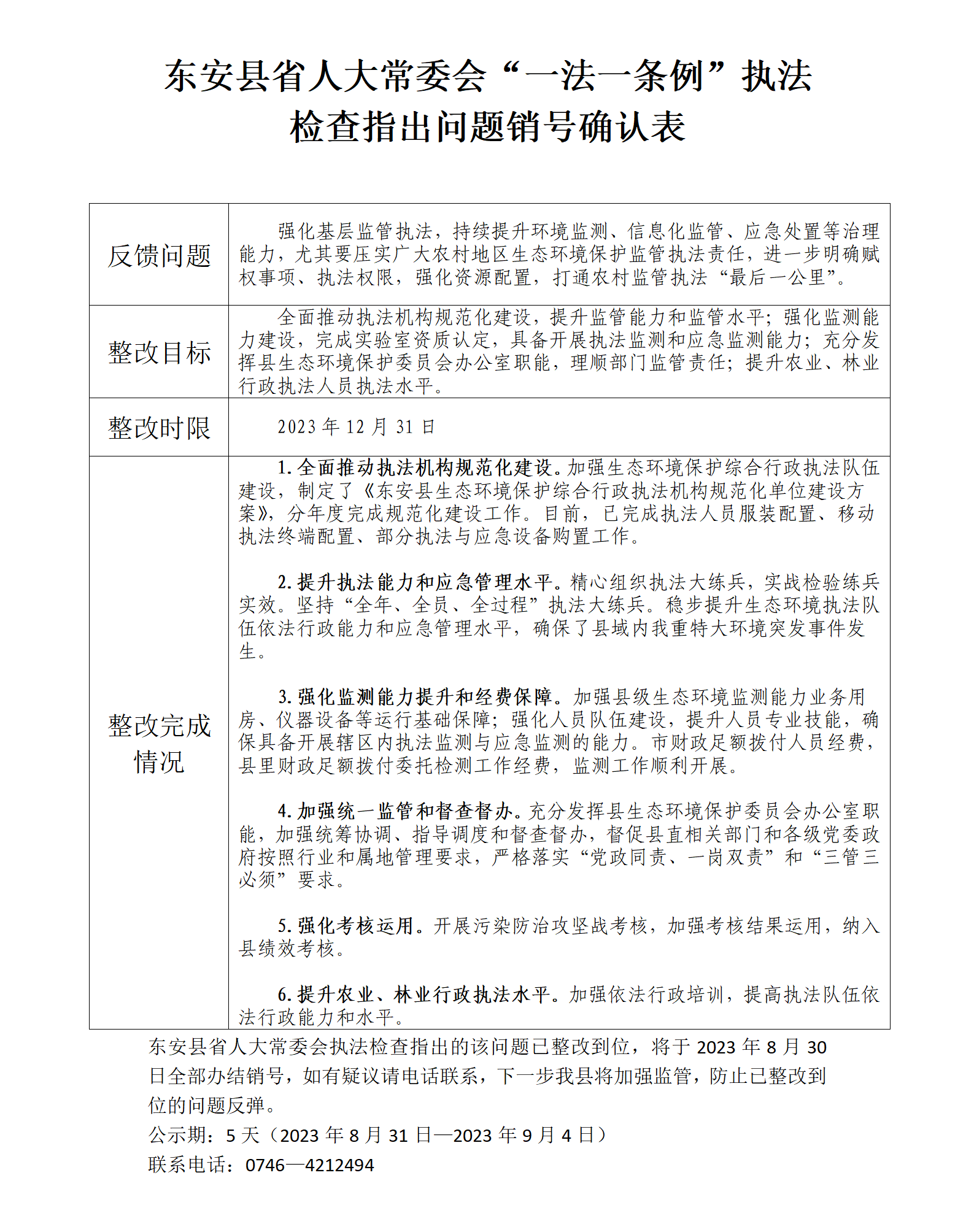 发文机关: 永州市生态环境局东安分局 发文日期: 2023-08-31