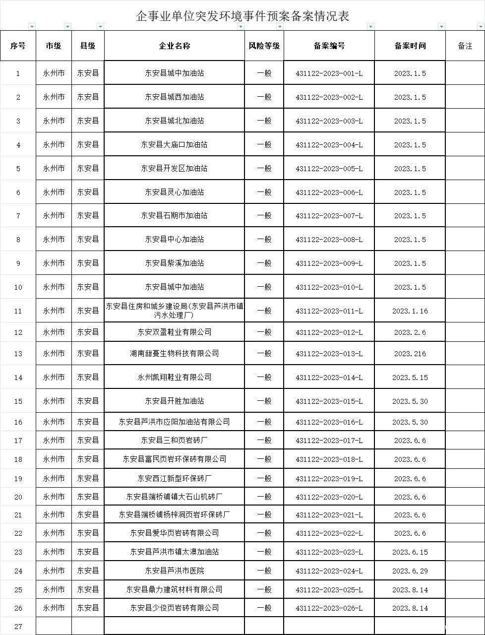 发文机关: 永州市生态环境局东安分局 发文日期: 2023-08-22