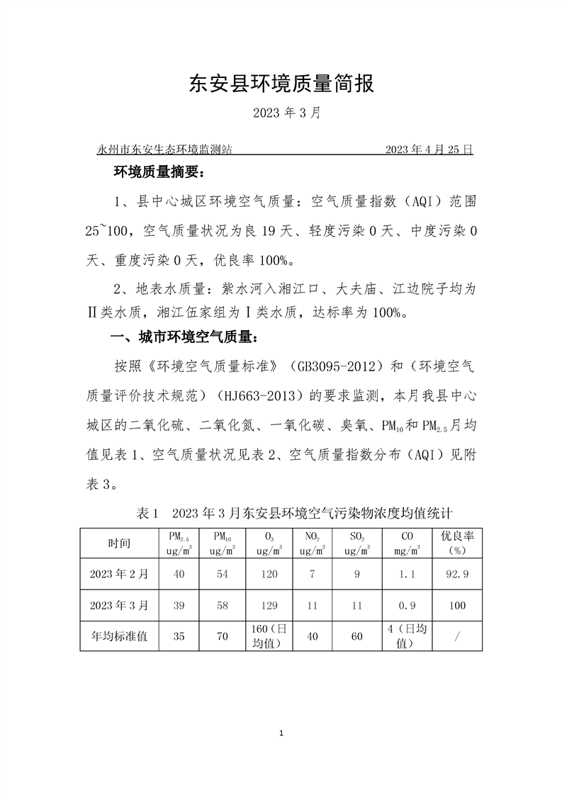 发文机关: 永州市生态环境局东安分局 发文日期: 2023-04-25