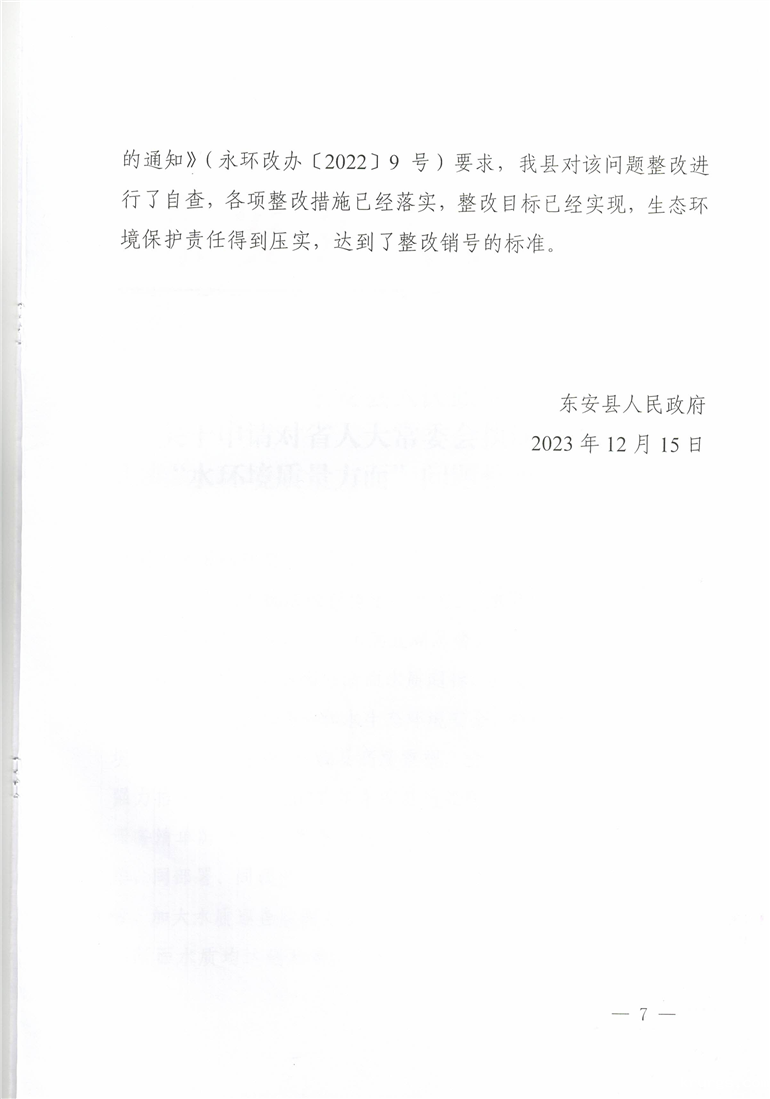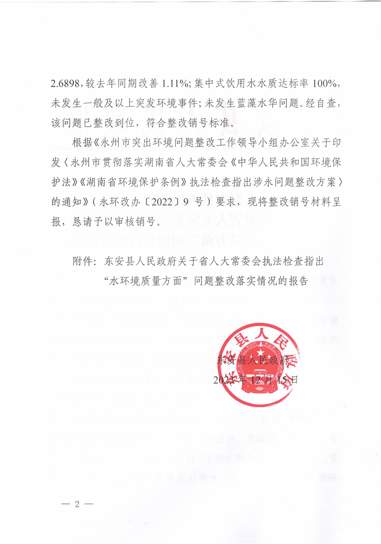 发文机关: 永州市生态环境局东安分局 发文日期: 2023-12-15