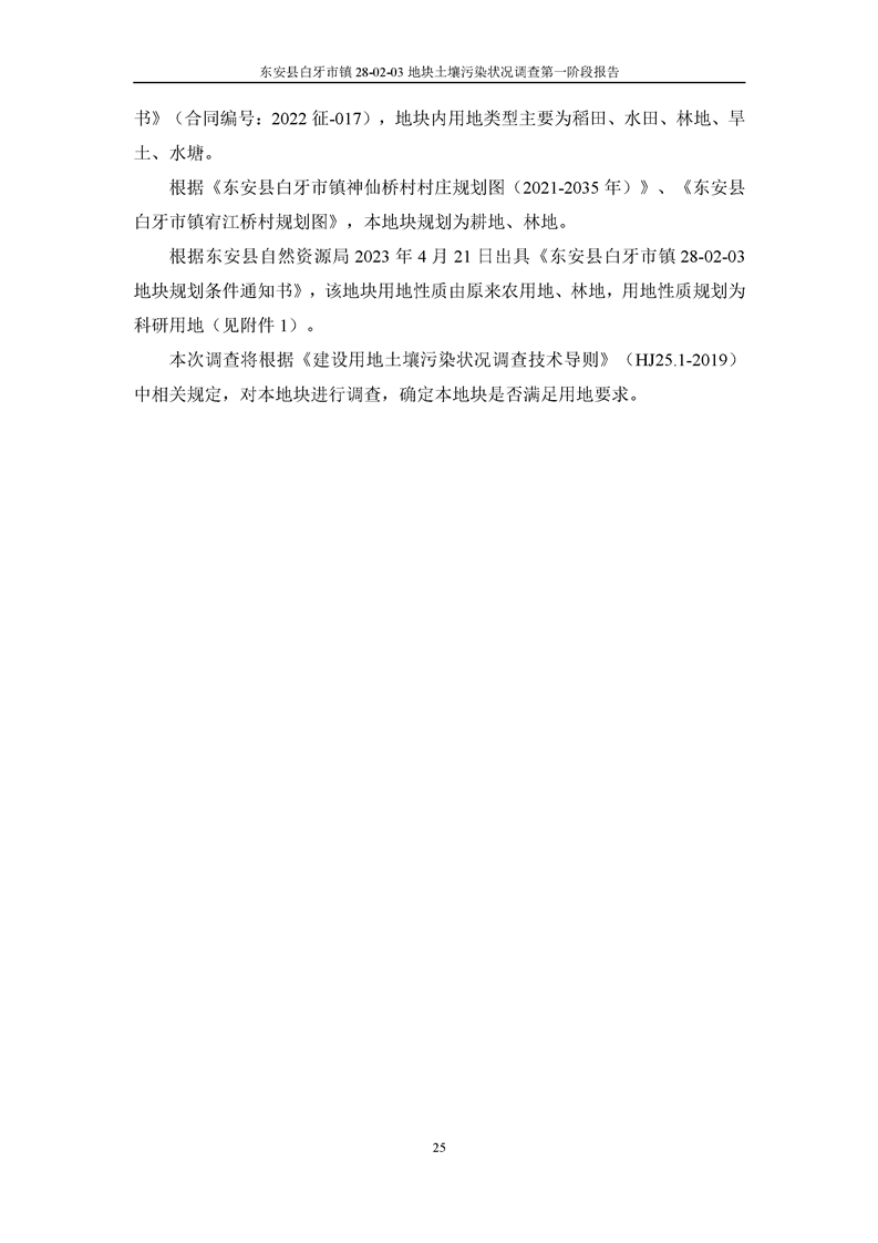 ray雷竞技官网入口白牙市镇神仙桥村28-02-03地块土壤污染状况调查第一阶段报告