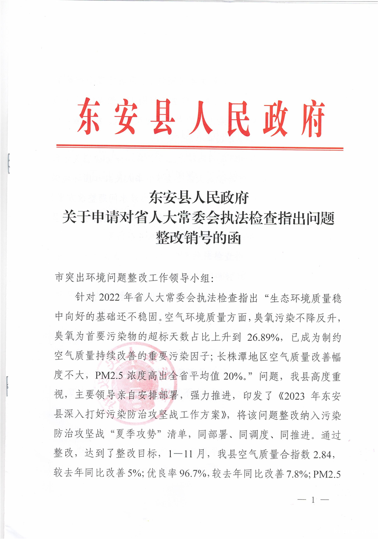 发文机关: 永州市生态环境局东安分局 发文日期: 2023-12-15