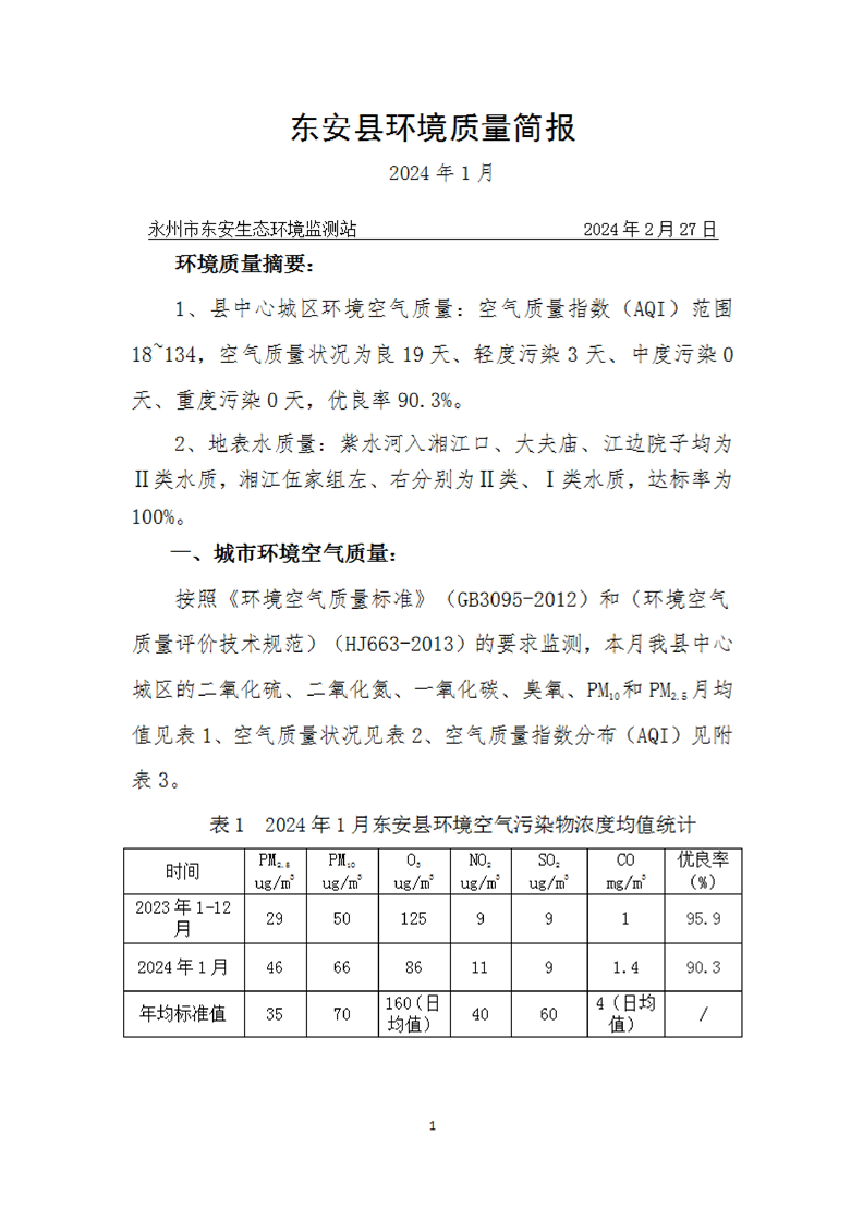 名称: ray雷竞技官网入口环境质量简报(2024年1月)
