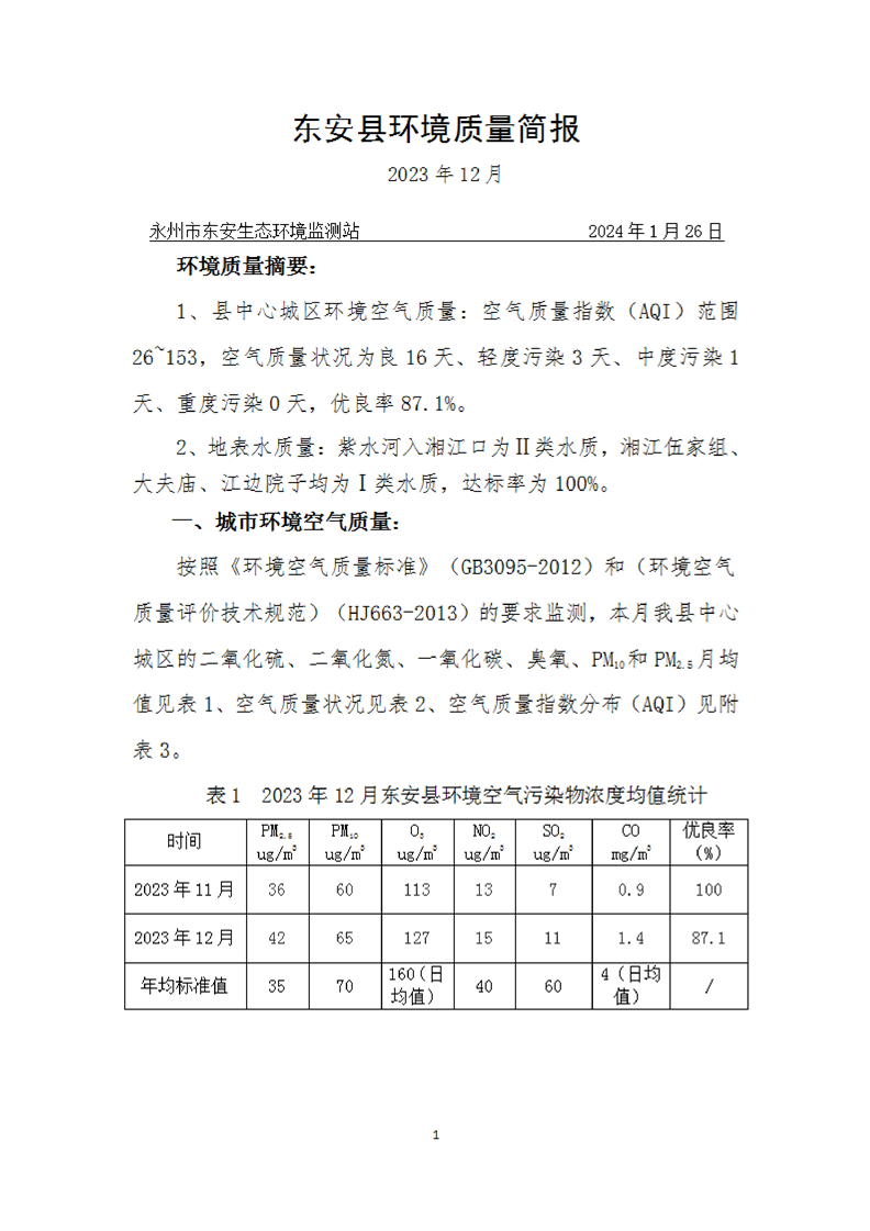 ray雷竞技官网入口环境质量简报(2023年12月)