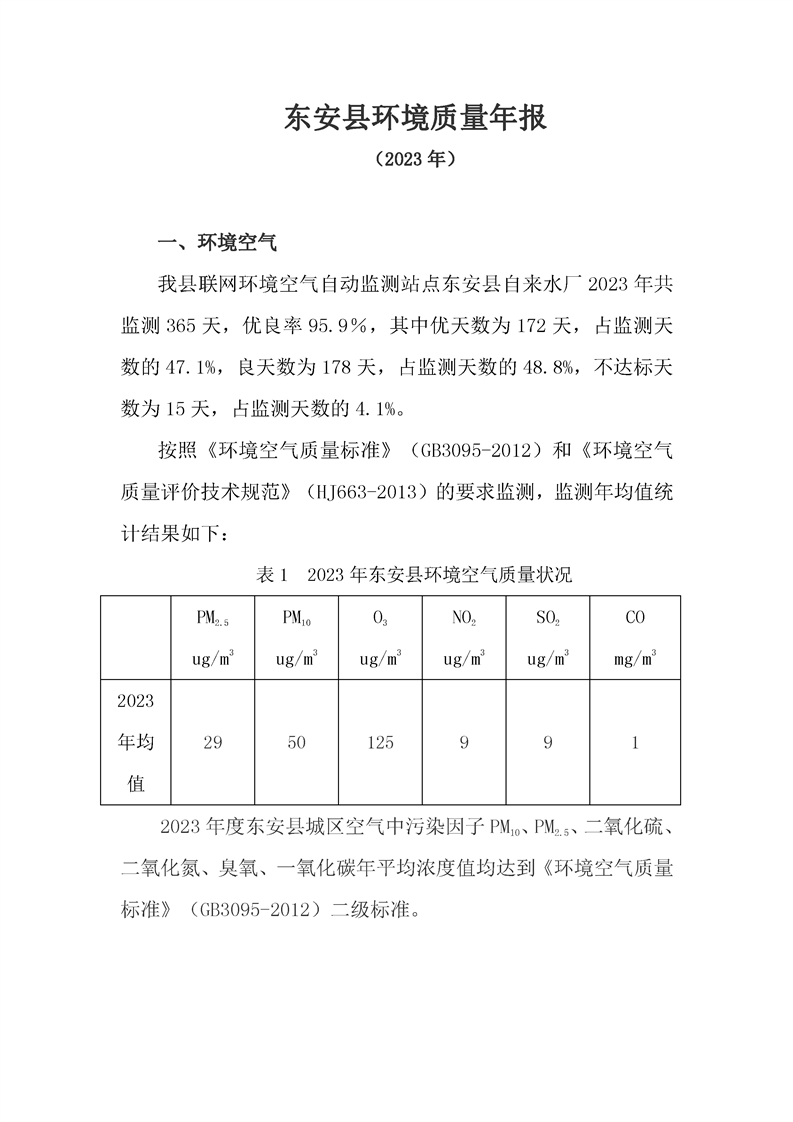 发文机关: 永州市生态环境局东安分局 发文日期: 2024-01-29