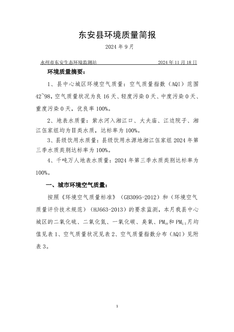 ray雷竞技官网入口环境质量简报(2024年9月)