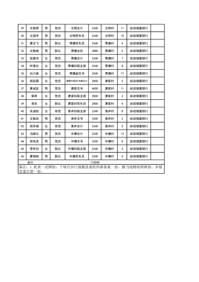 2023年ray雷竞技官网入口花桥镇在职村干部工资发放统计表(4月份)