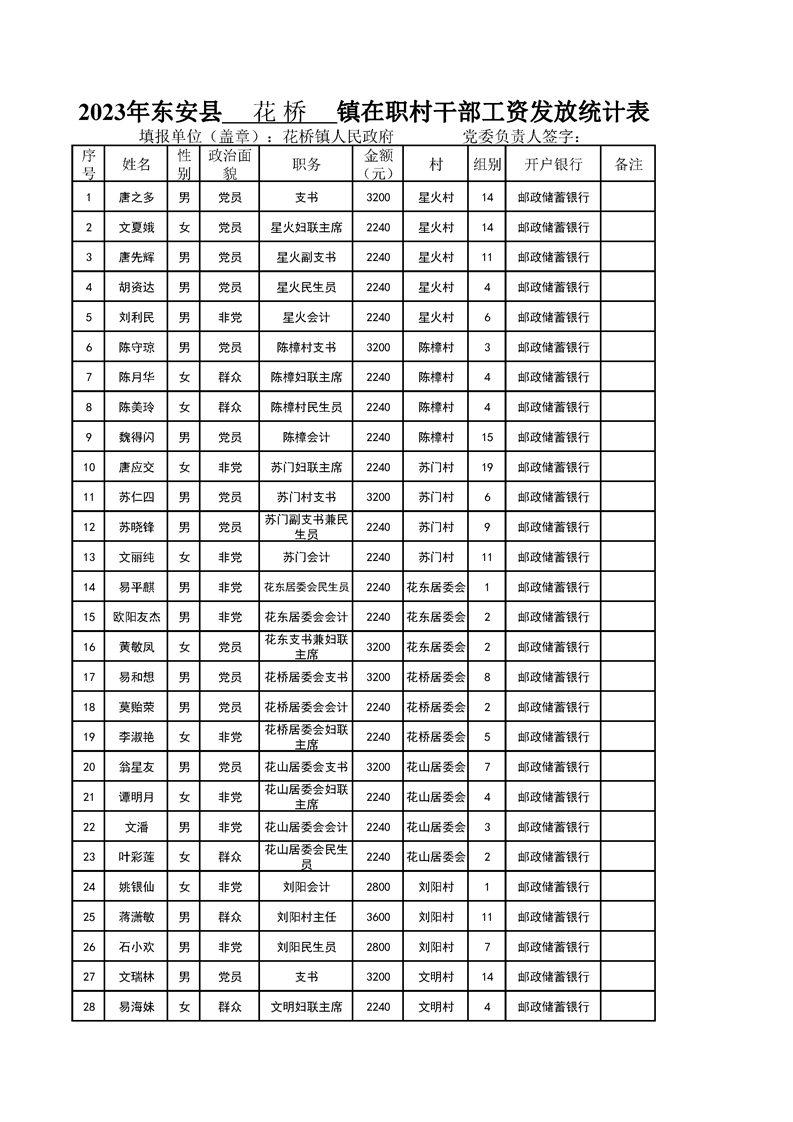 名称: 2023年ray雷竞技官网入口花桥镇在职村干部工资发放统计表(4月份)