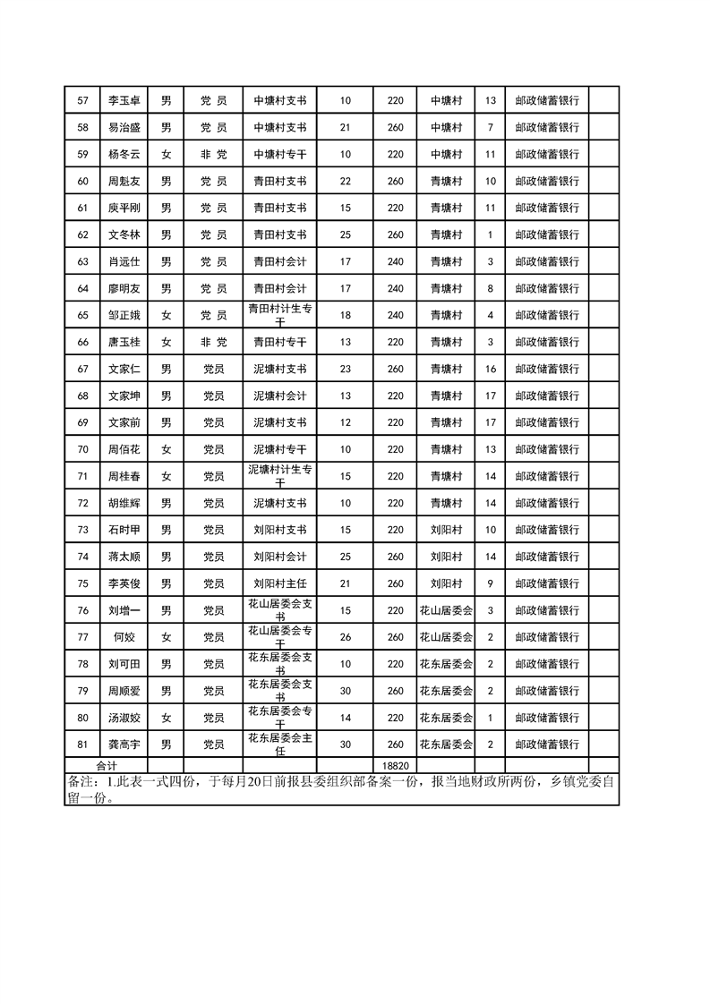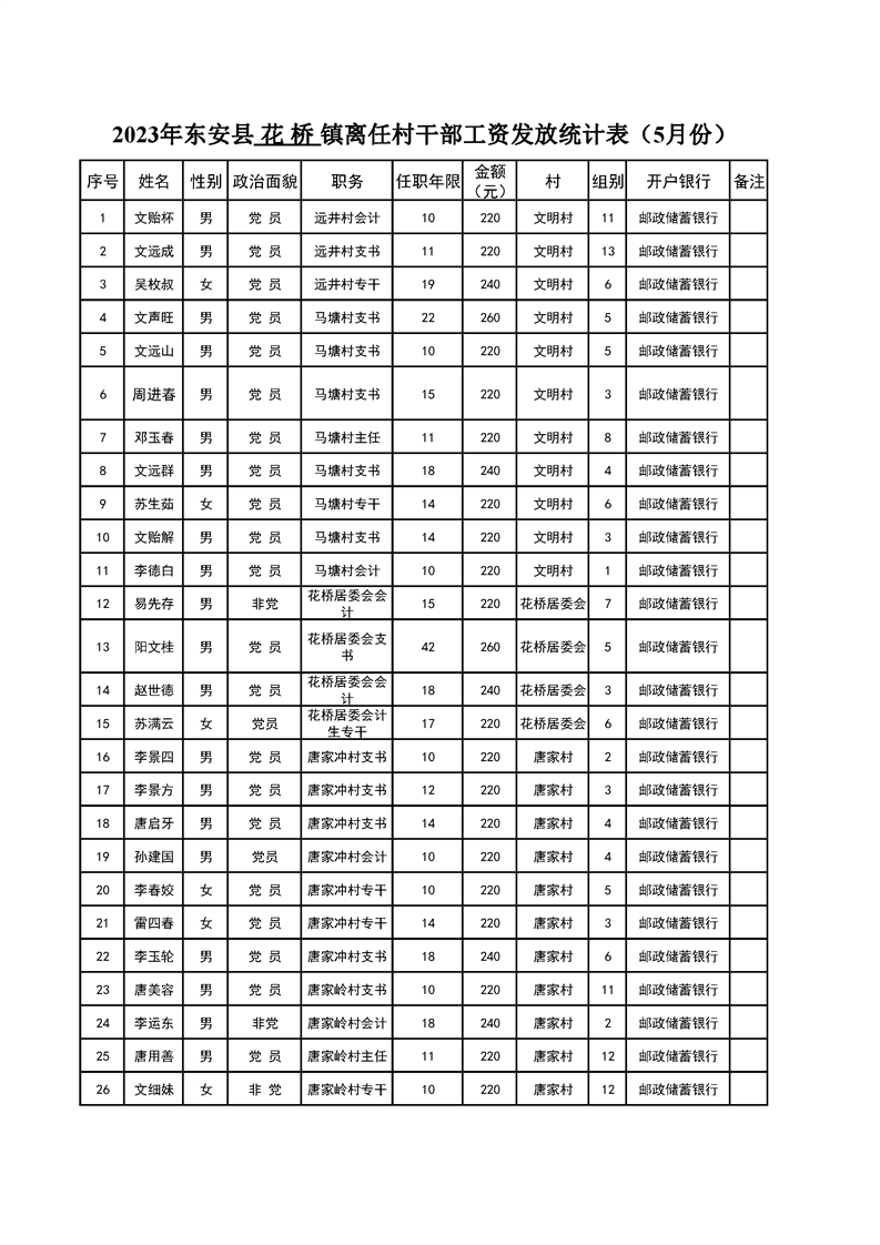 2023年ray雷竞技官网入口 花 桥 镇离任村干部工资发放统计表(5月份)