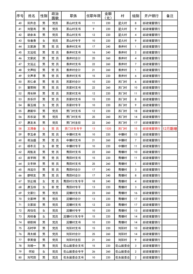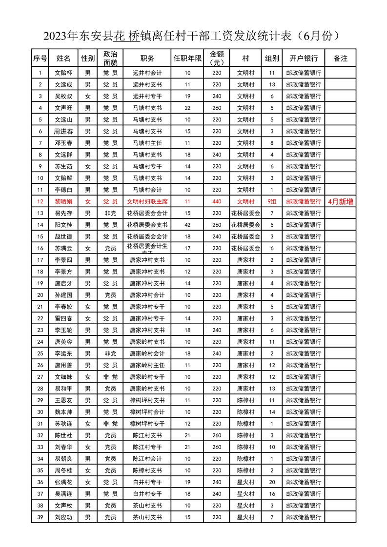 名称: 2023ray雷竞技官网入口花桥镇离任村干部6月份工资发放表