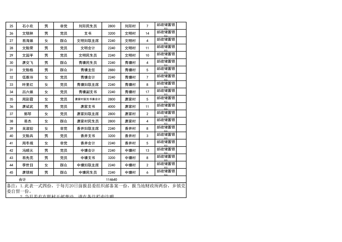 名称: 2023ray雷竞技官网入口花桥镇在职村干部6月份工资发放表