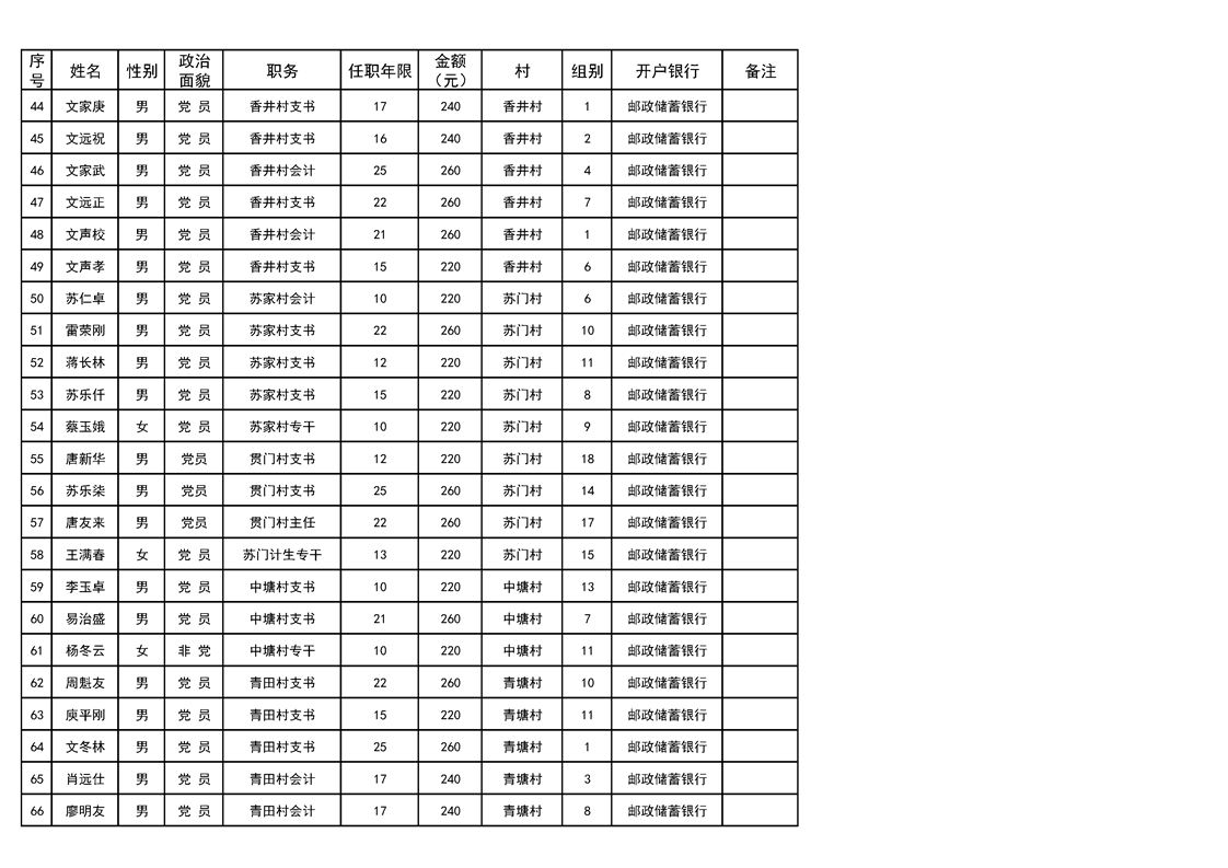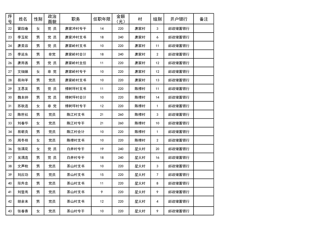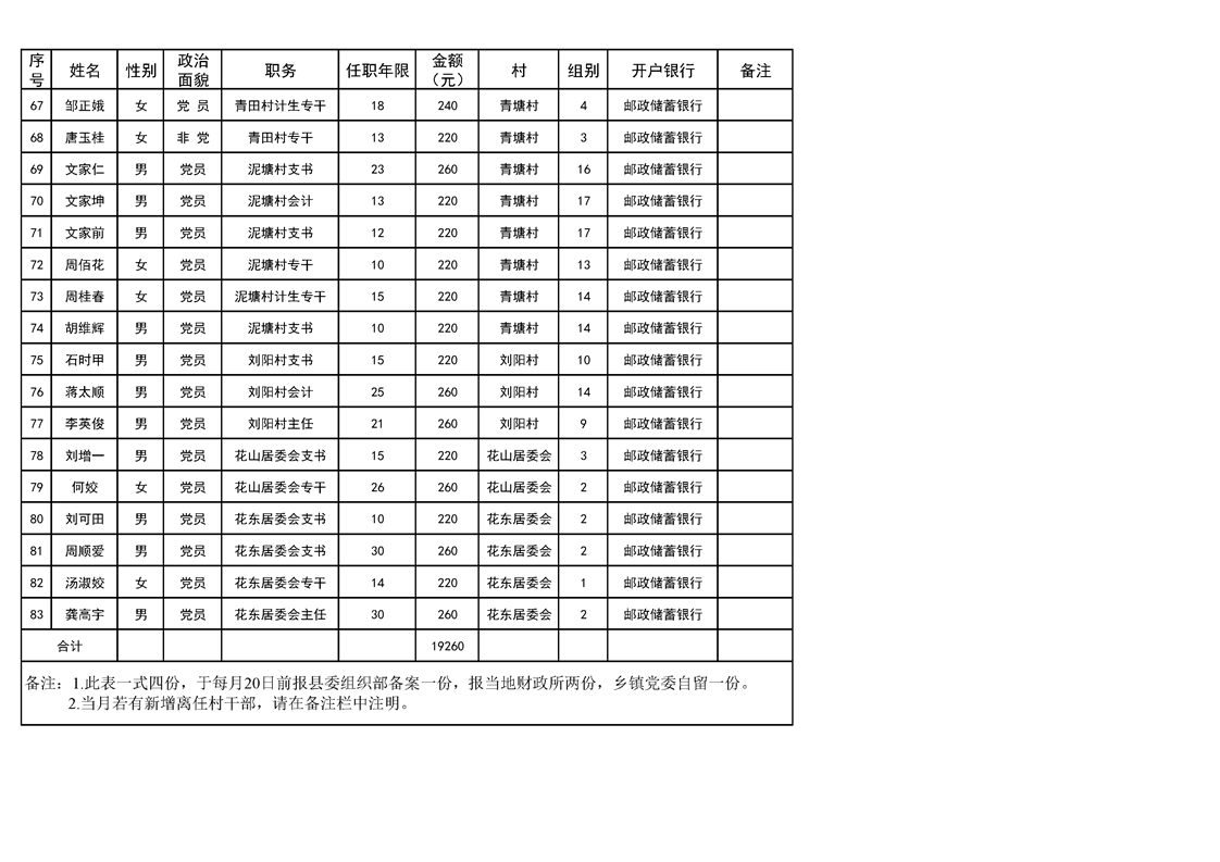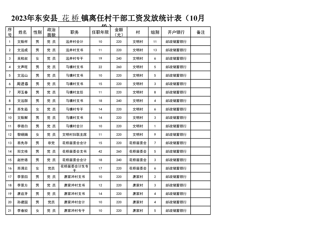 名称: 2023年ray雷竞技官网入口花桥镇10月份离任村干部工资发放表