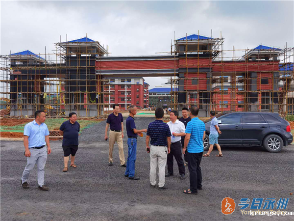 7月29日,县交通运输局党组书记、局长唐德光(右四)率队到启德、崇德两所学校进行实地踏勘