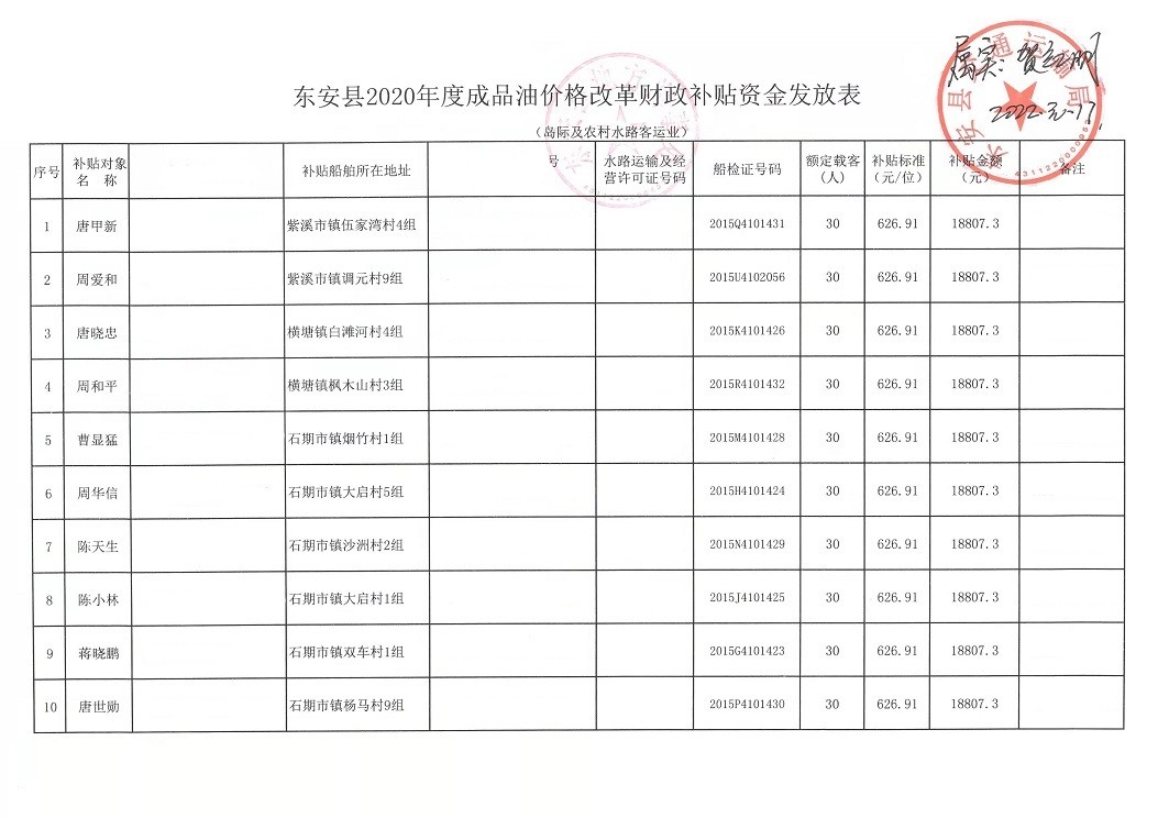ray雷竞技官网入口2020年度成品油价格改革财政补贴资金发放表