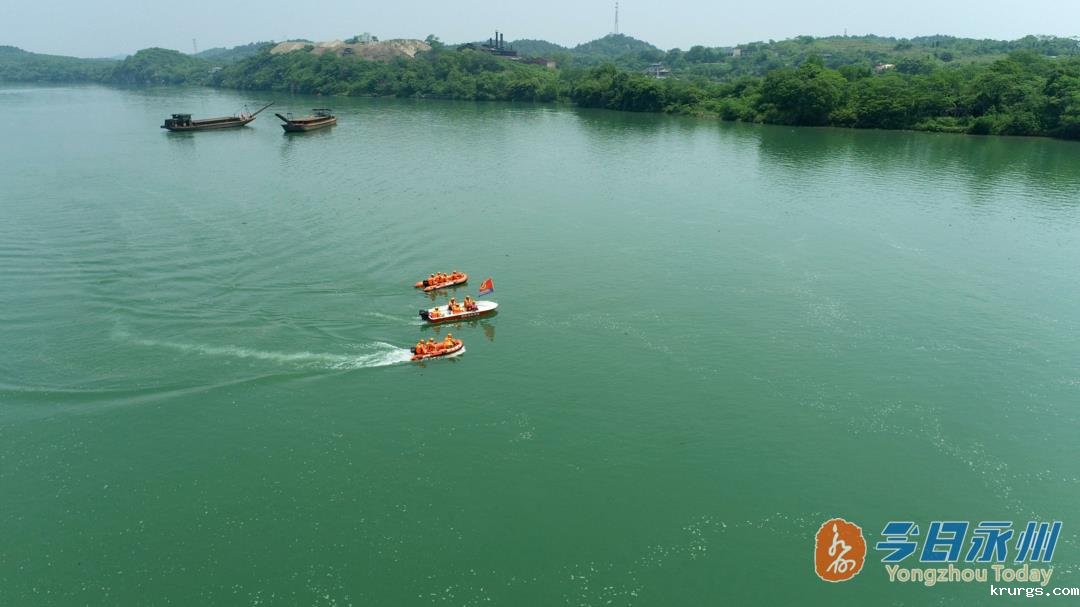 5月6日上午,东安A县在石期市镇湘江水域开展防汛抢险应急演练。