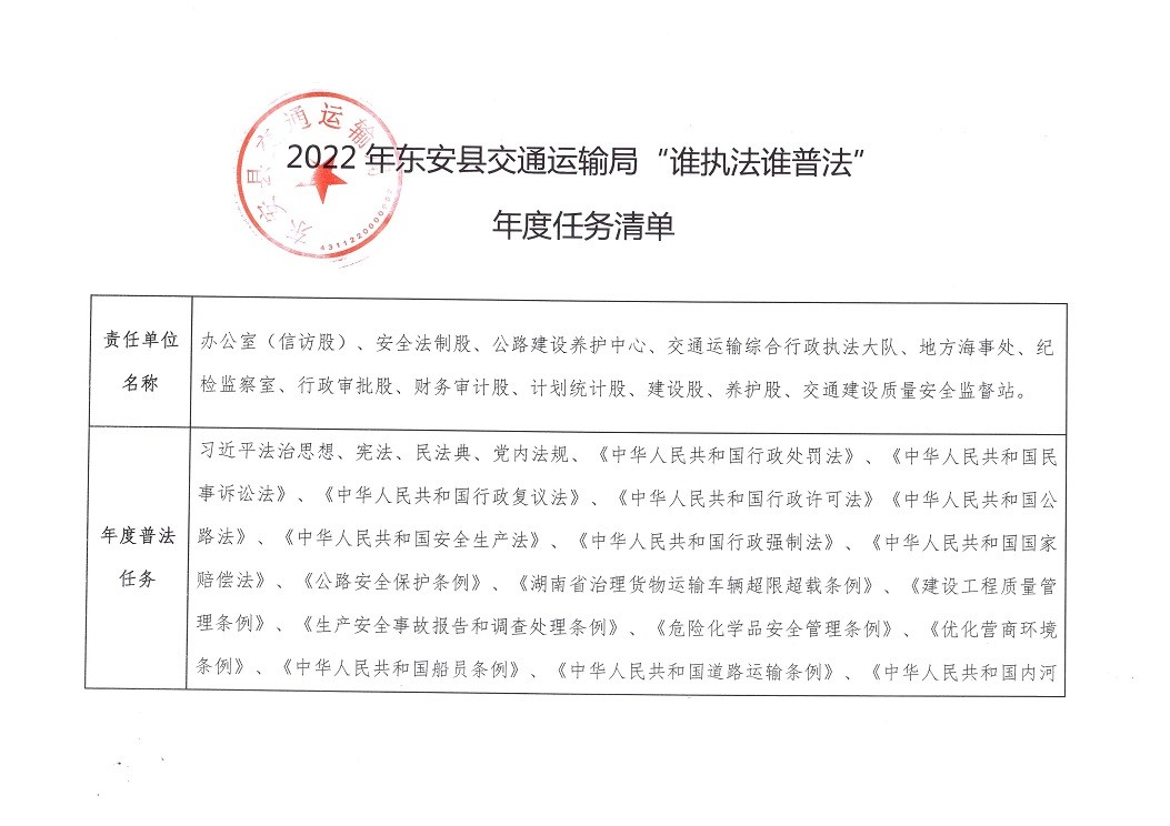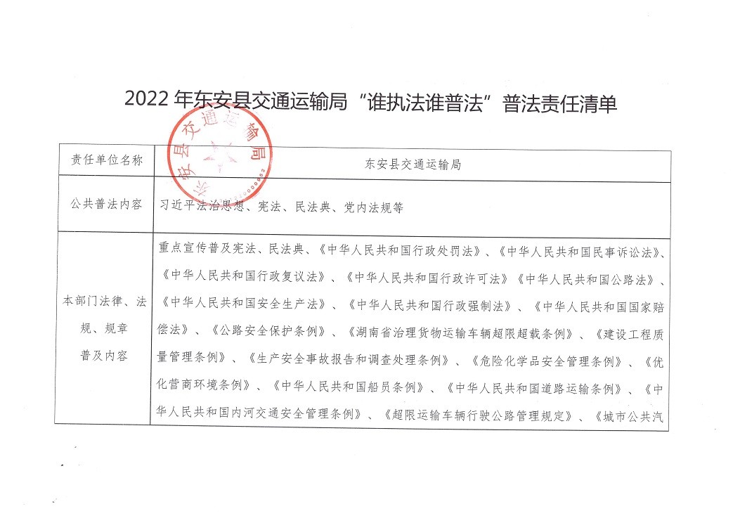 2022年ray雷竞技官网入口交通运输局“谁执法谁普法”普法责任清单、年度任务清单