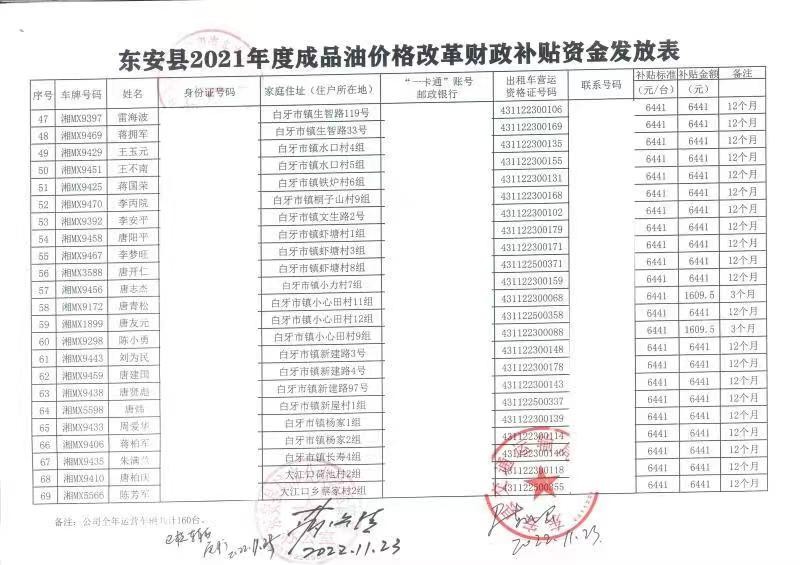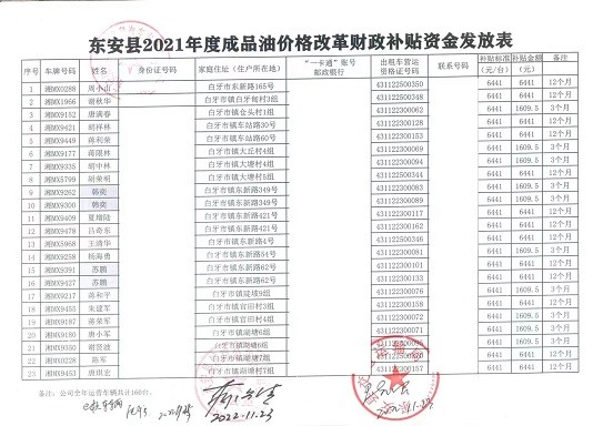 ray雷竞技官网入口2021年度成品油价格改革财政补贴资金发放表