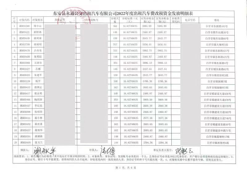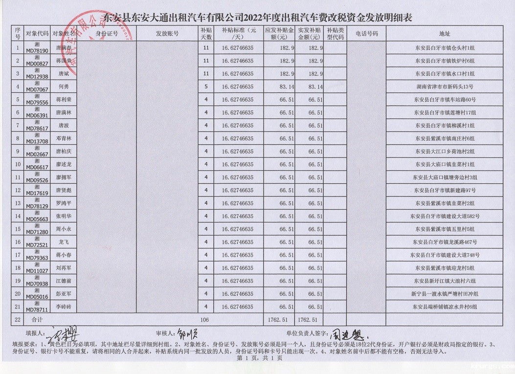 ray雷竞技官网入口2022年度出租汽车费改税补贴资金发放表