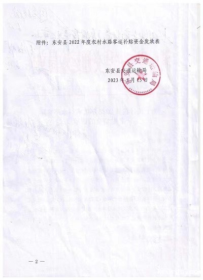 名称: 关于拨付我县2022年度农村水路客运补贴资金的请示