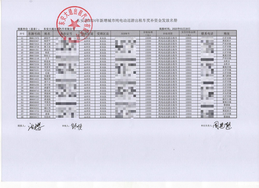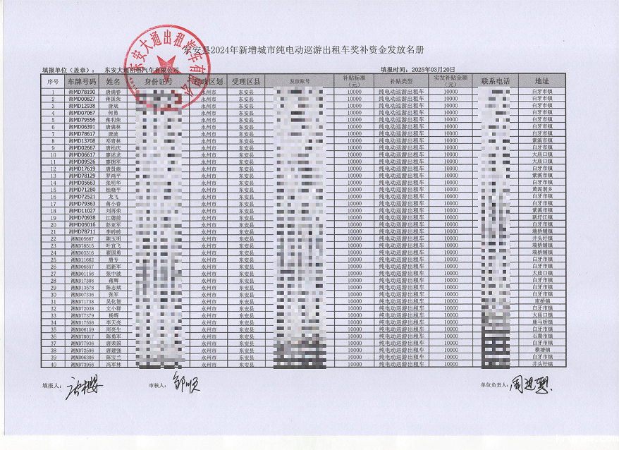 ray雷竞技官网入口2024年新增城市纯电动巡游出租车奖补资金发放表