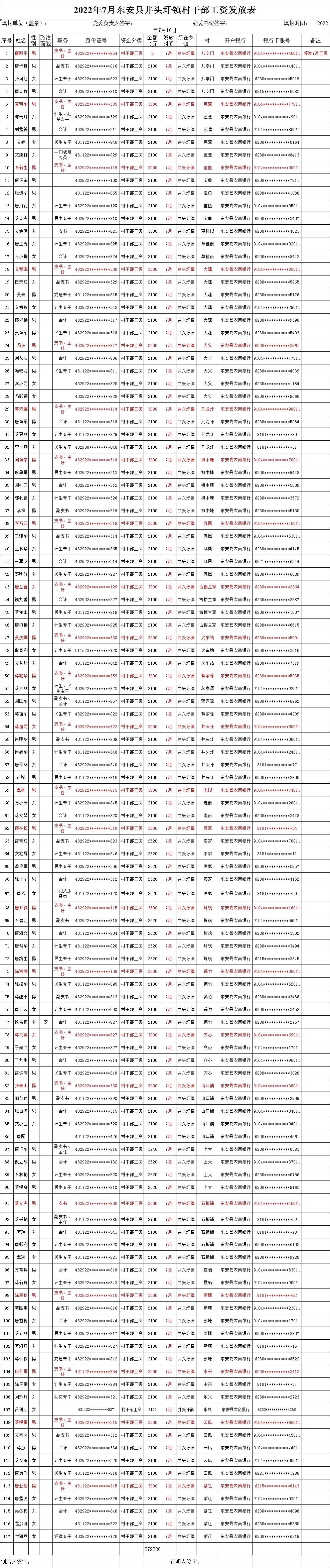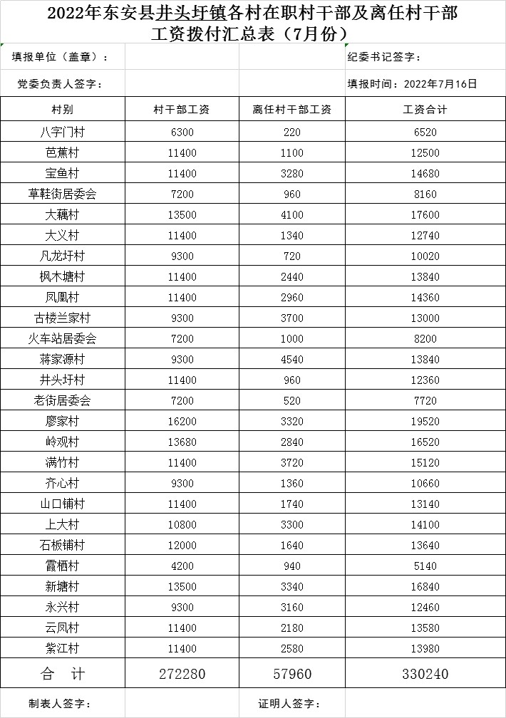 名称: 2022年ray雷竞技官网入口井头圩镇各村在职村干部及离任村干部工资拨付表(7月份)