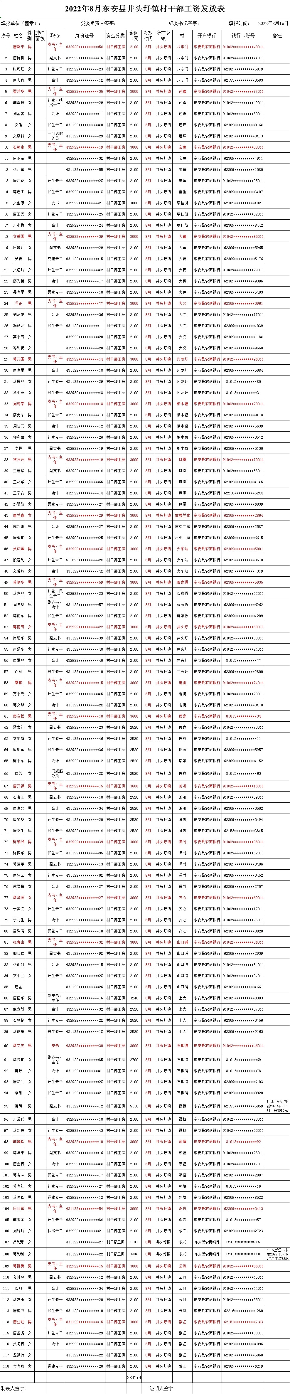 名称: 2022年ray雷竞技官网入口井头圩镇村干部工资发放统计表(8月份)
