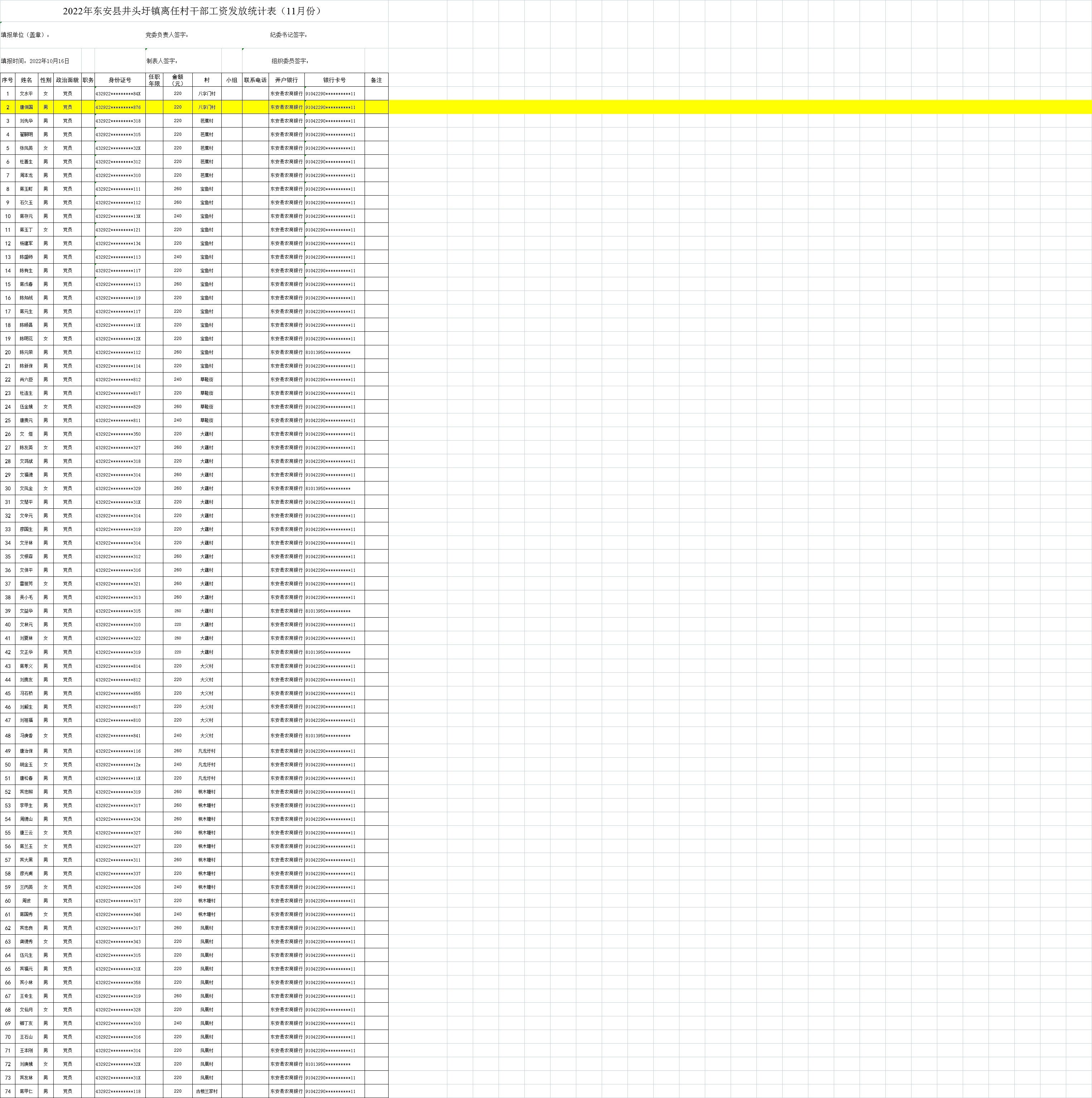 名称: 2022年ray雷竞技官网入口井头圩镇村干部工资发放统计表(11月份)