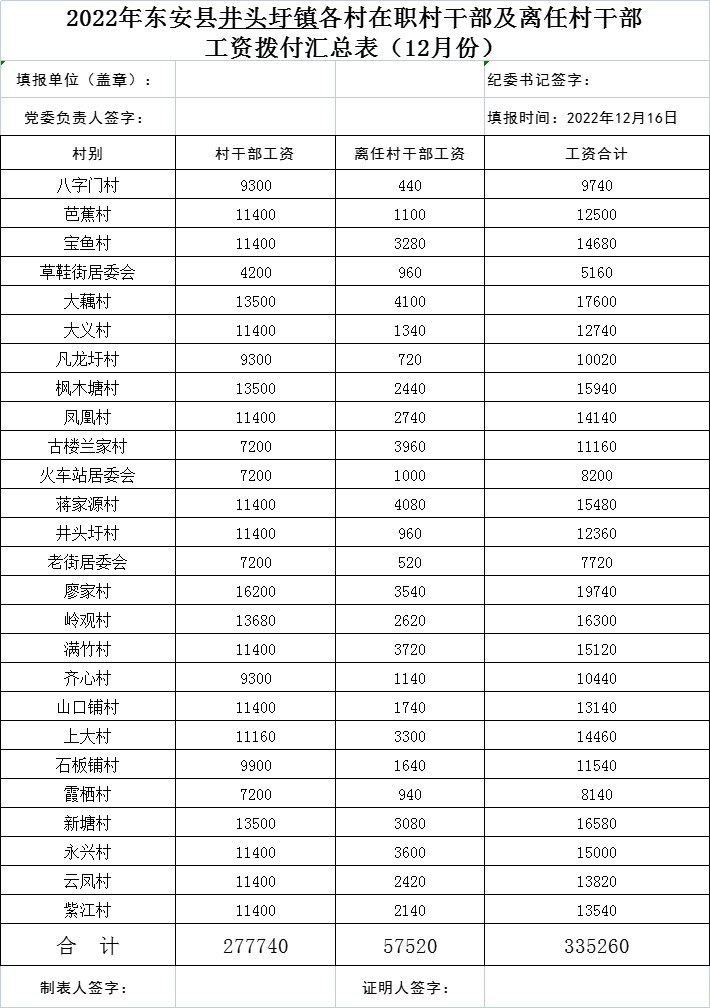名称: 2022年12月ray雷竞技官网入口井头圩镇村干部工资发放表