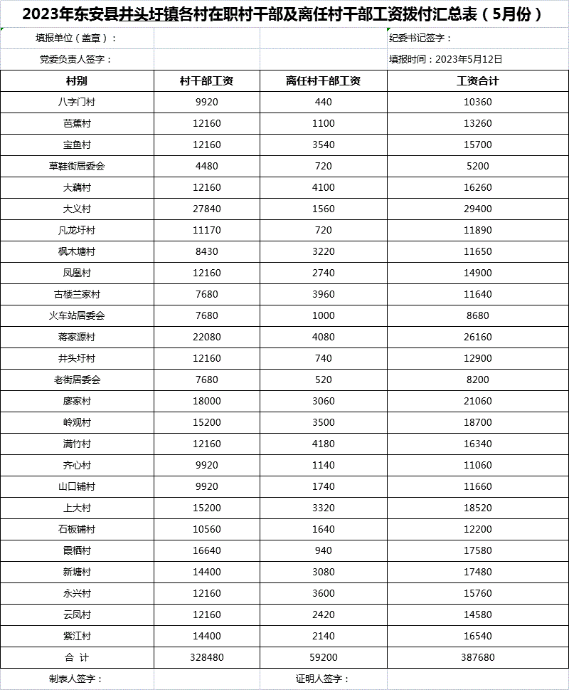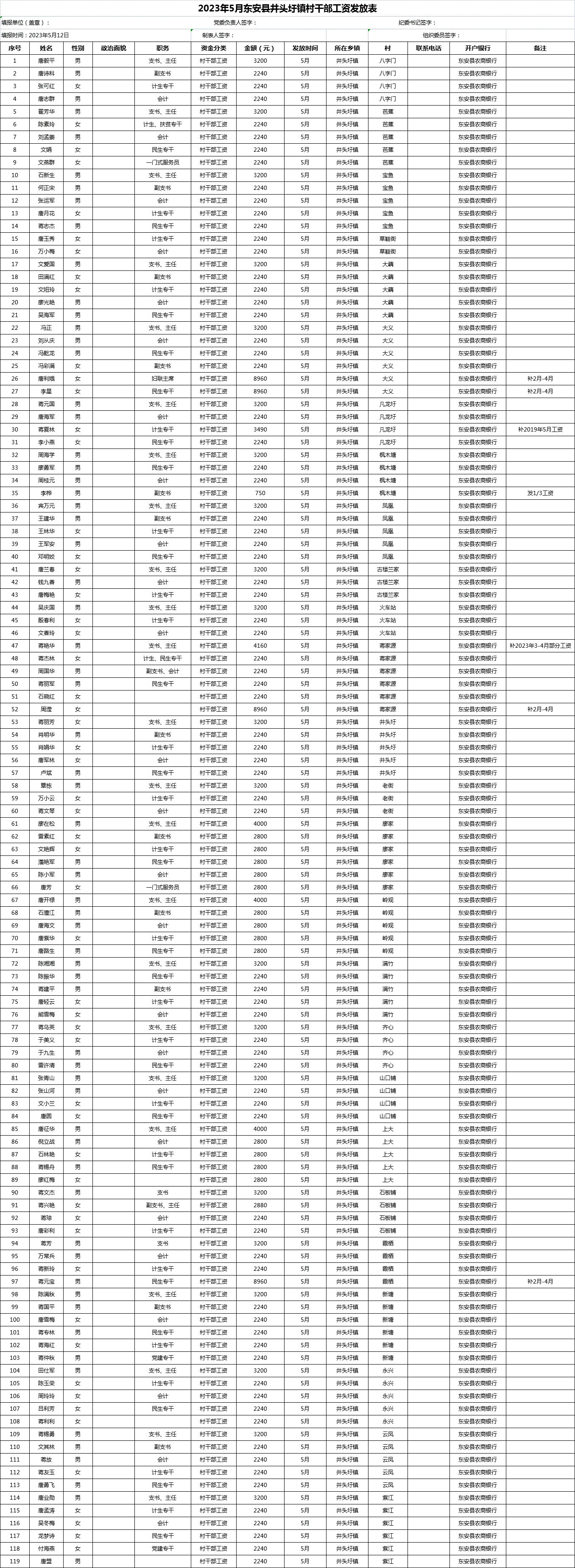 名称: 2023年5月ray雷竞技官网入口井头圩镇村干部工资发放表