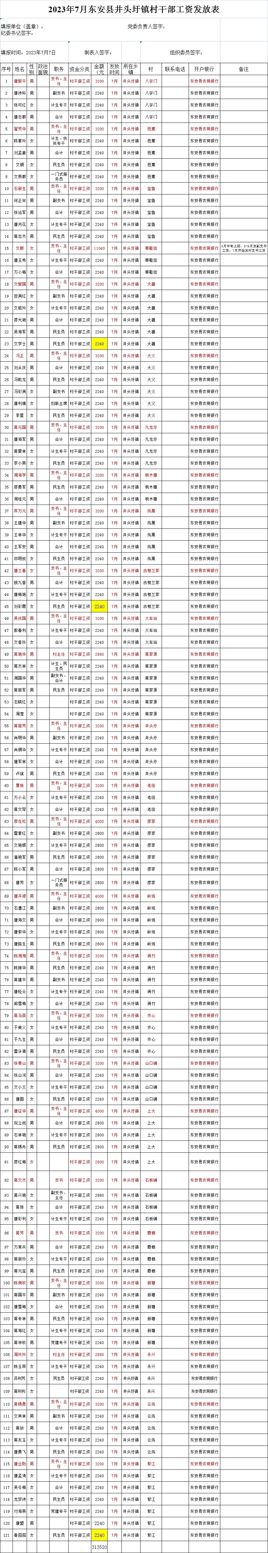 名称: 2023年7月ray雷竞技官网入口井头圩镇村干部工资发放表