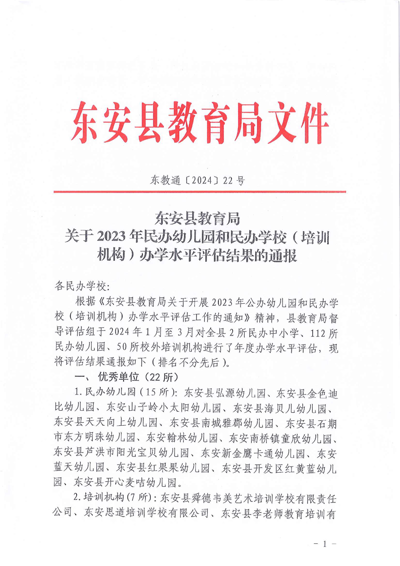 ray雷竞技官网入口教育局关于2023年民办幼儿园和民办学校(培训机构)办学水平评估结果的通报
