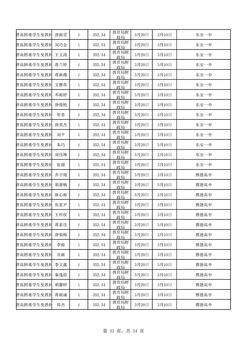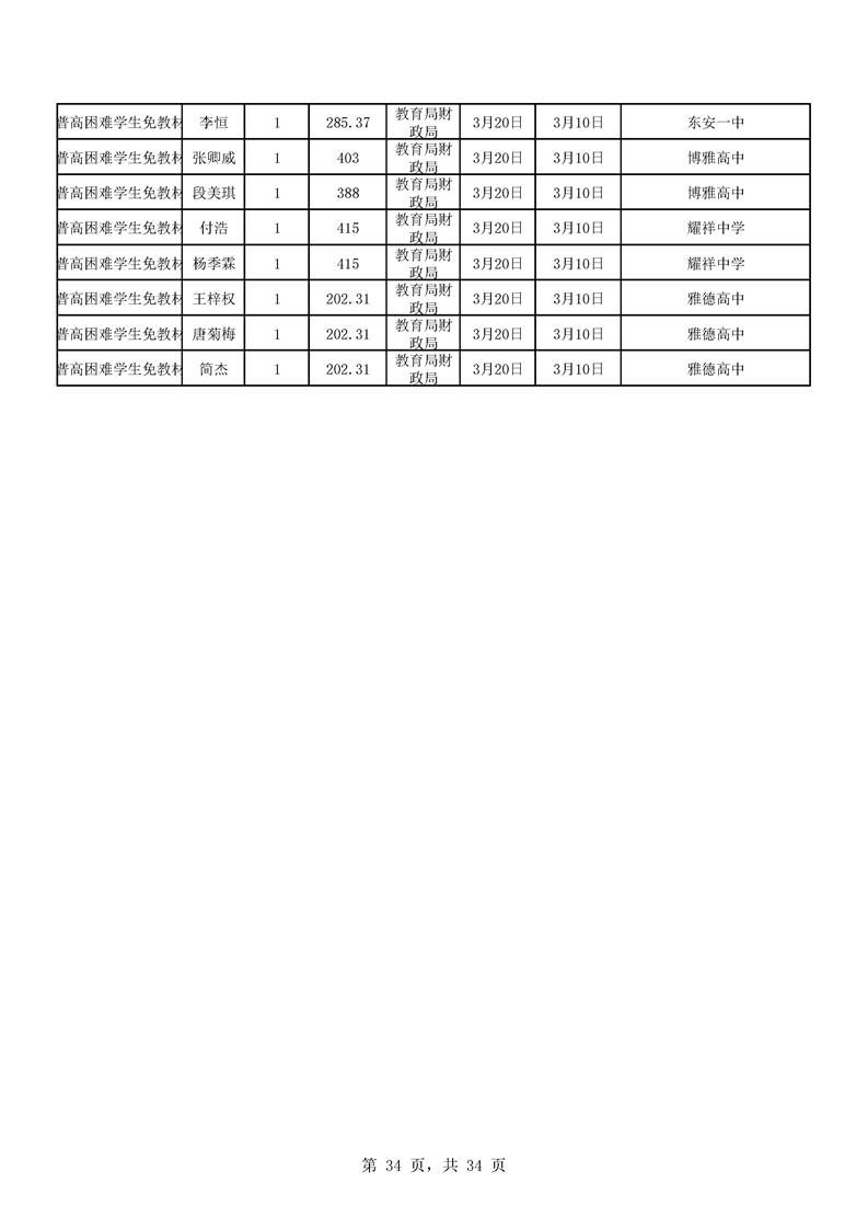 ray雷竞技官网入口2025年春季普通高中学校困难学生免教材公示表